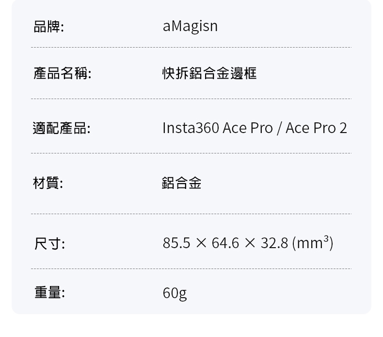 ▶品名:Insta360 ACE PRO 2/ACE PRO / ACE 快拆鋁合金邊框 +鏡頭套