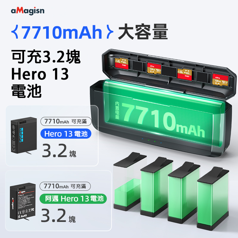 ▶7710mAh大容量,可充3.2塊Hero 13電池。