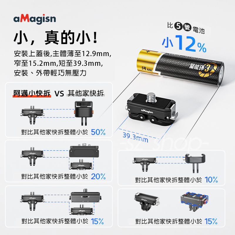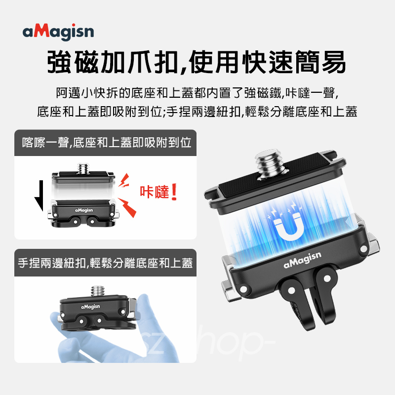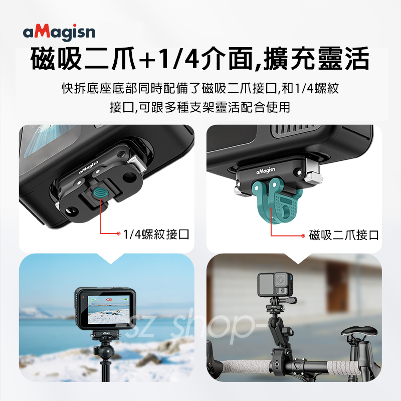 .磁吸二爪+1/4螺紋接口設計,擴充靈活