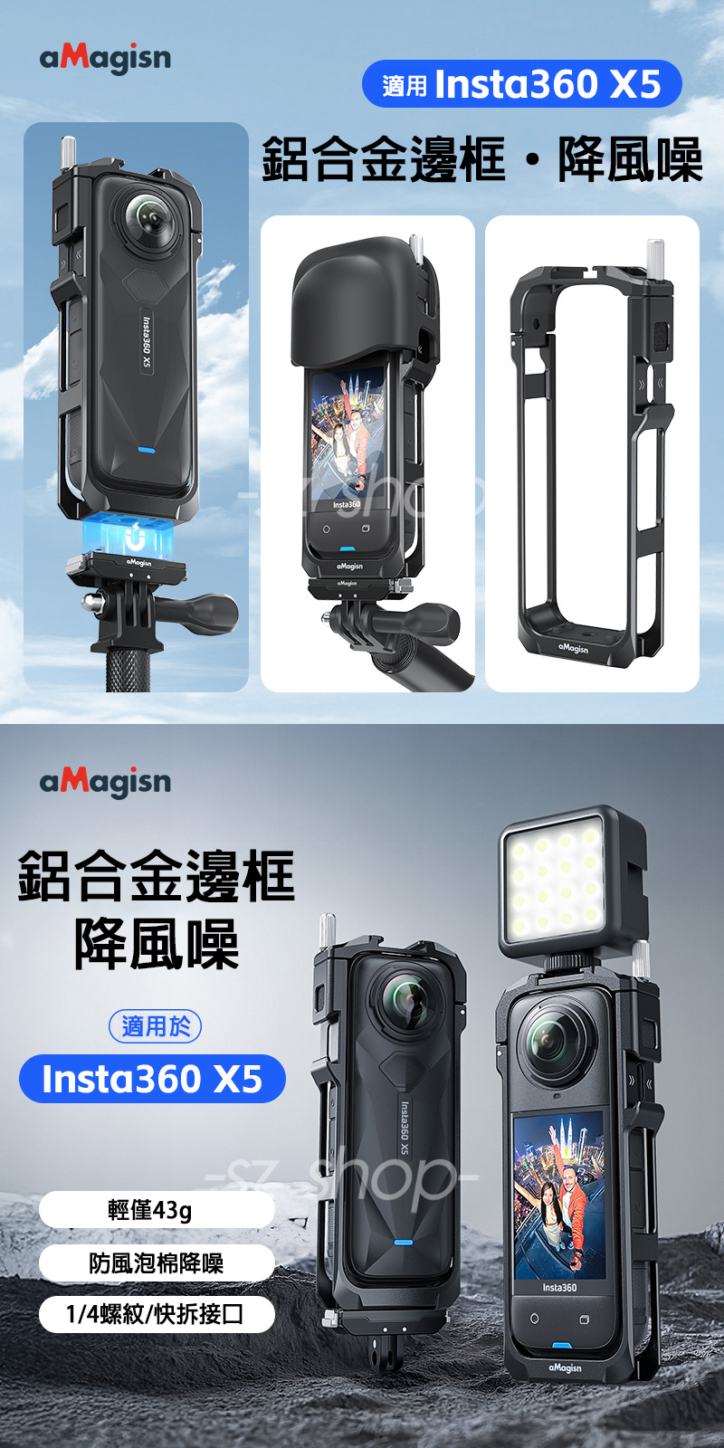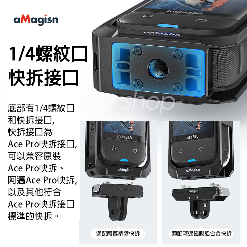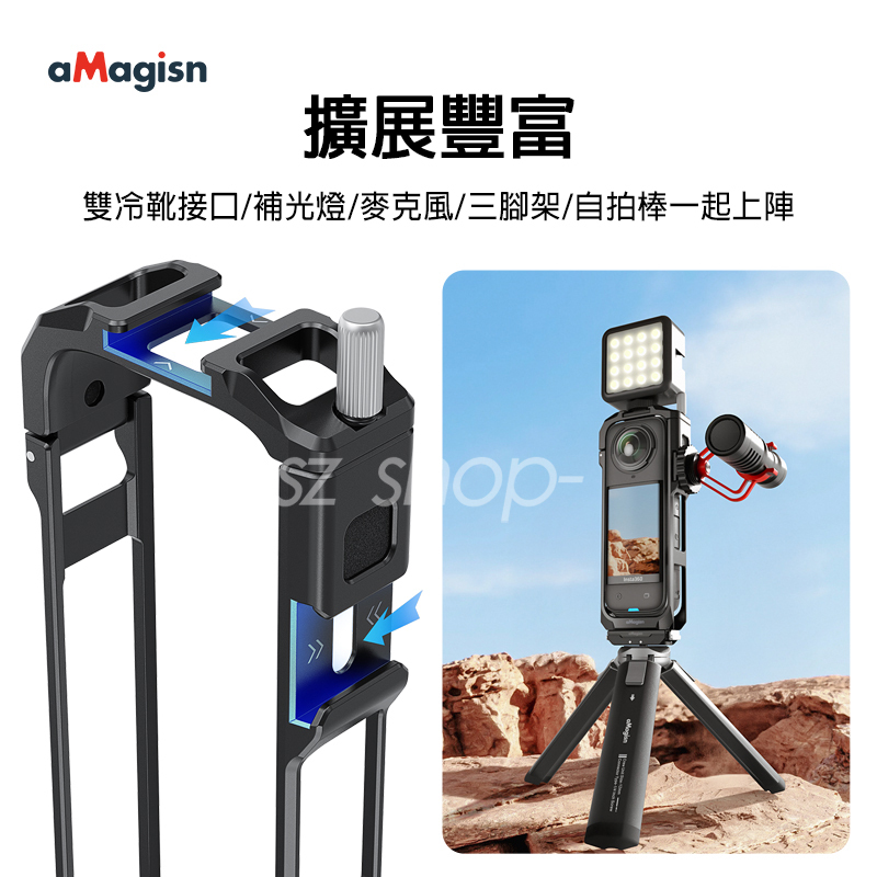 ▶品名:Insta360 X5 雙冷靴鋁合金邊框+鏡頭套 (底部含快拆+1/4螺孔)