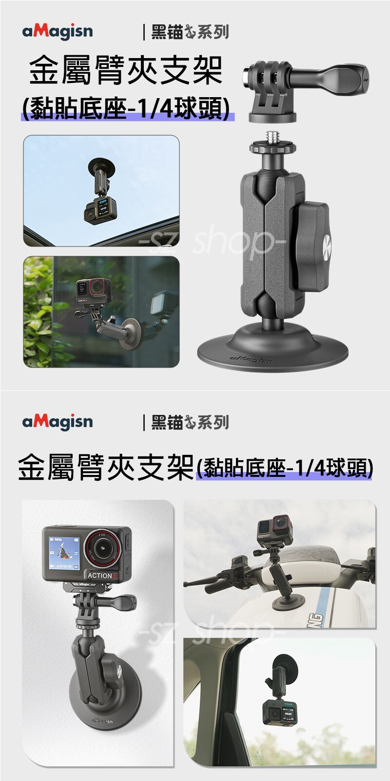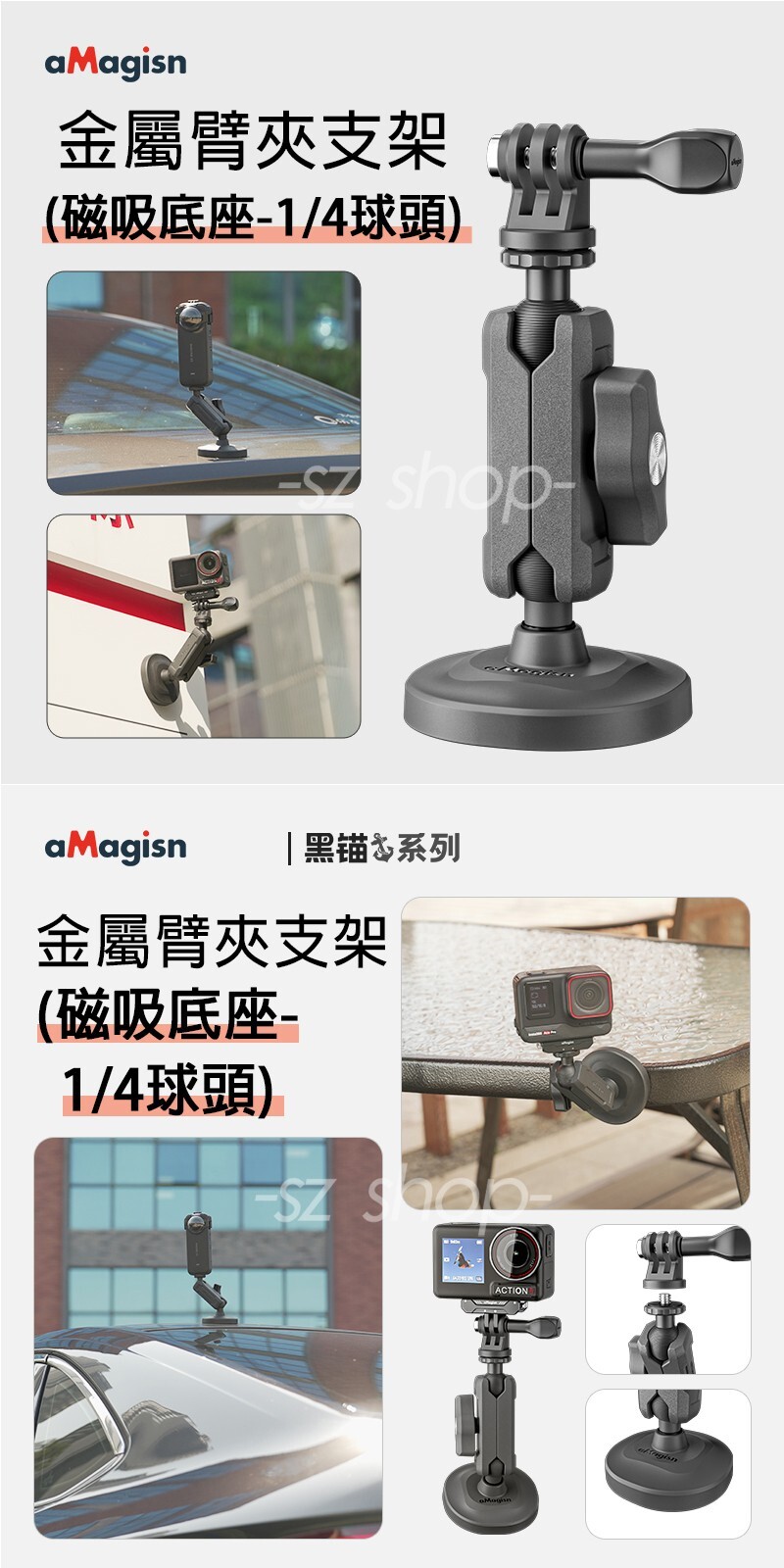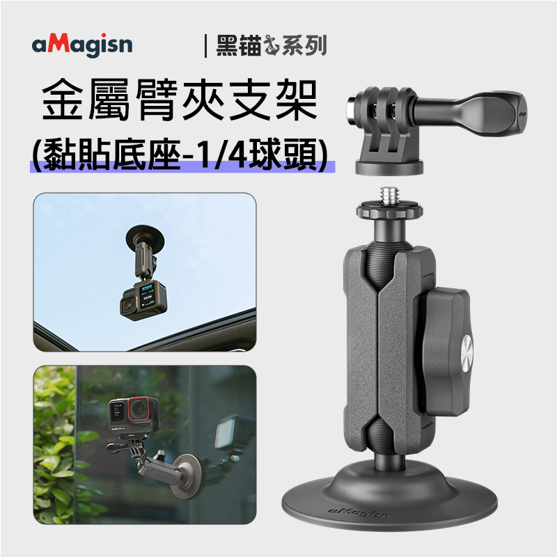 .鋁合金臂夾支架 (磁吸底座-1/4球頭)