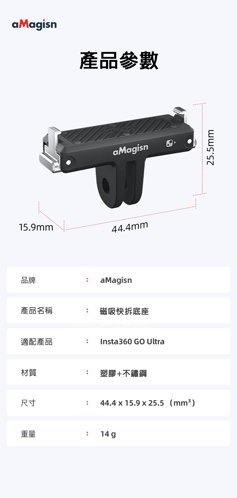 ▶產品名稱:Insta360 GO Ultra 磁吸快拆支架