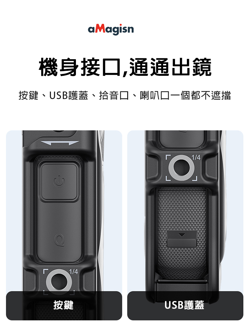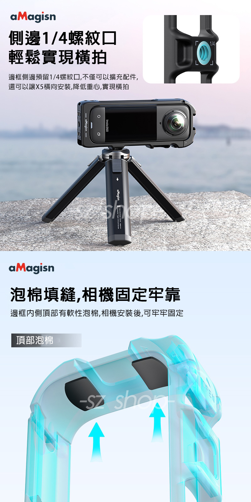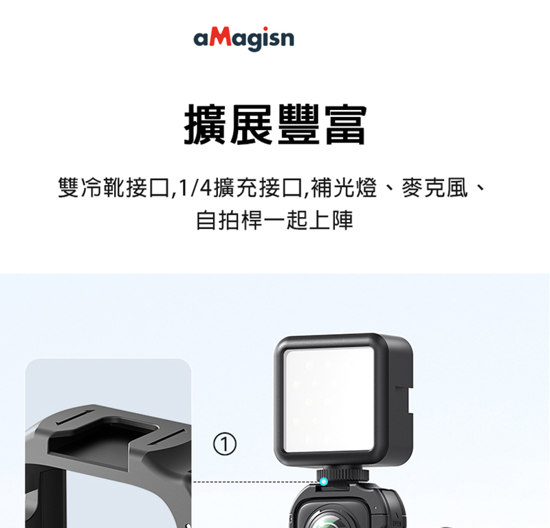 ▶側邊1/4螺紋口,輕鬆實現橫拍