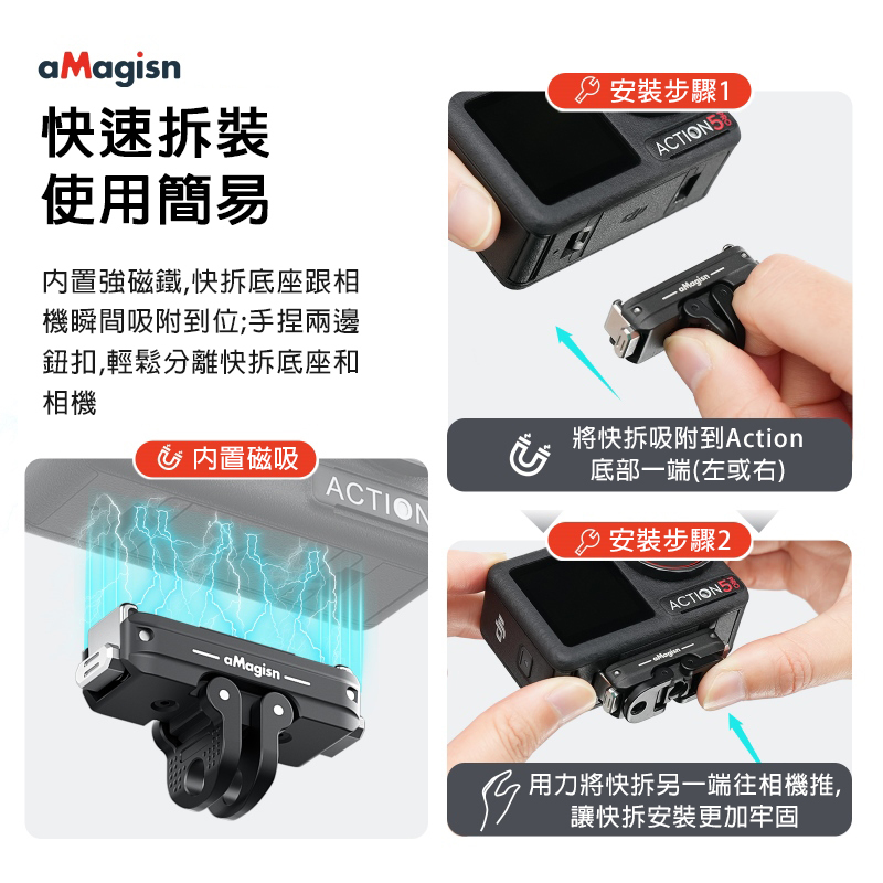 ▶磁吸配合不銹鋼爪扣,牢固穩定