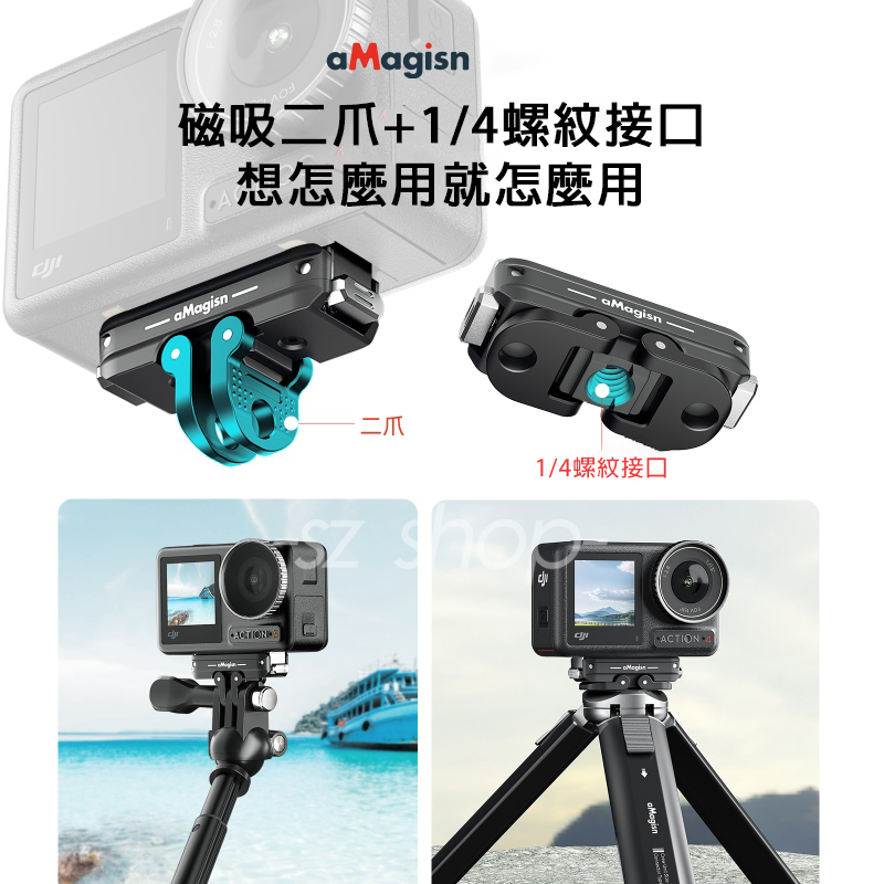 ▶底部含磁吸二爪+1/4螺紋接口