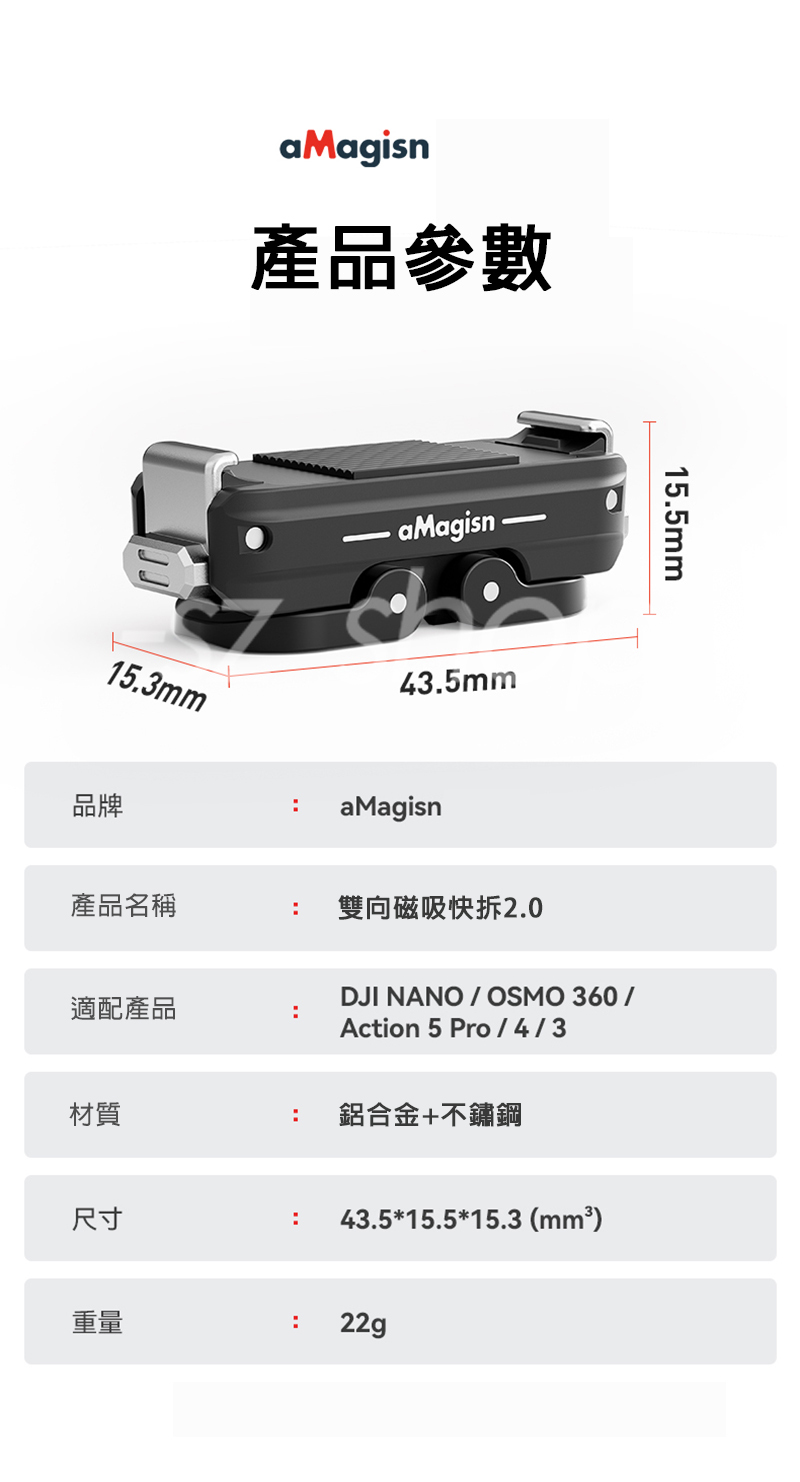 ▶品名:Insta360 NANO / OSMO 360 /Action 5 Pro/4/3 鋁合金快拆支架2.0
