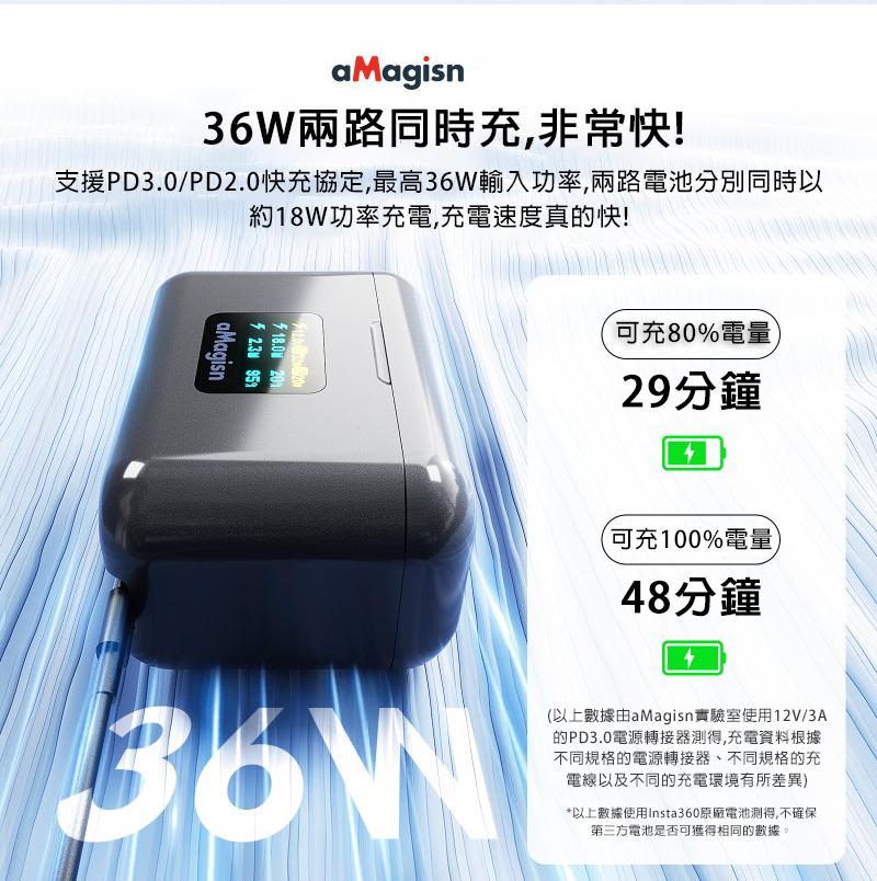 ▶36W 29分鐘可充80%電量