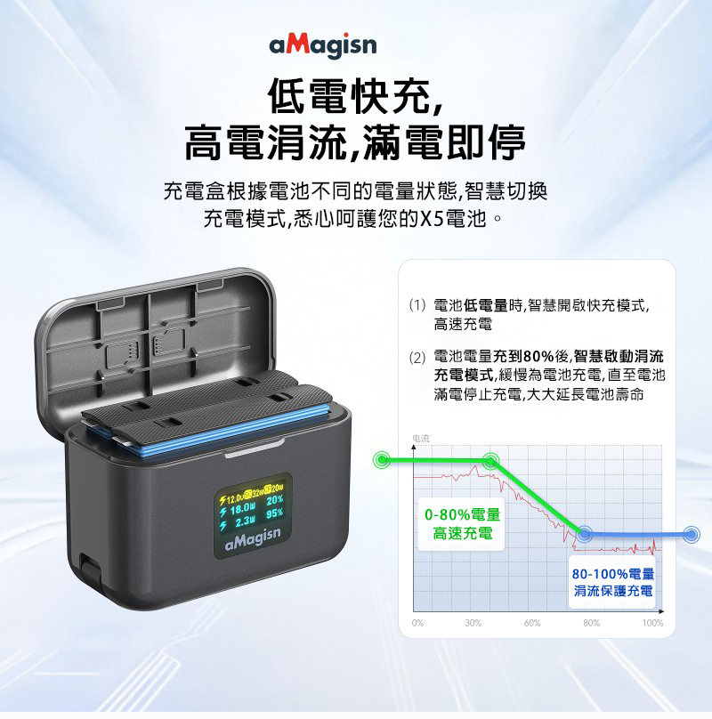 ▶低電快充、高電涓流,滿電即停不傷電池