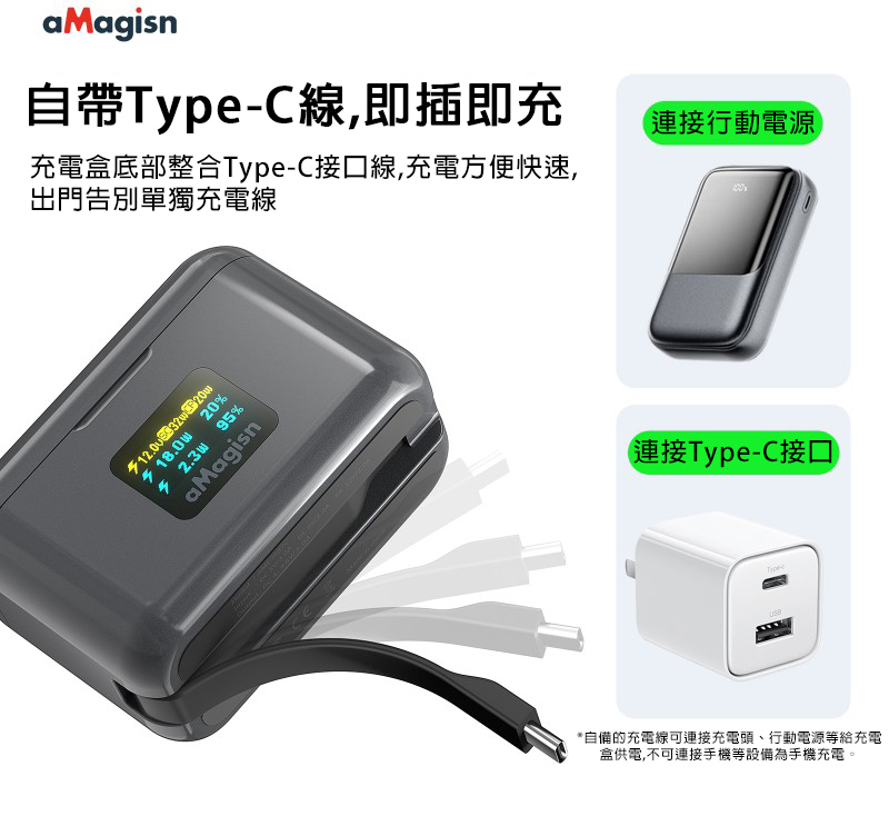▶自帶TYPE-C線,即插即充