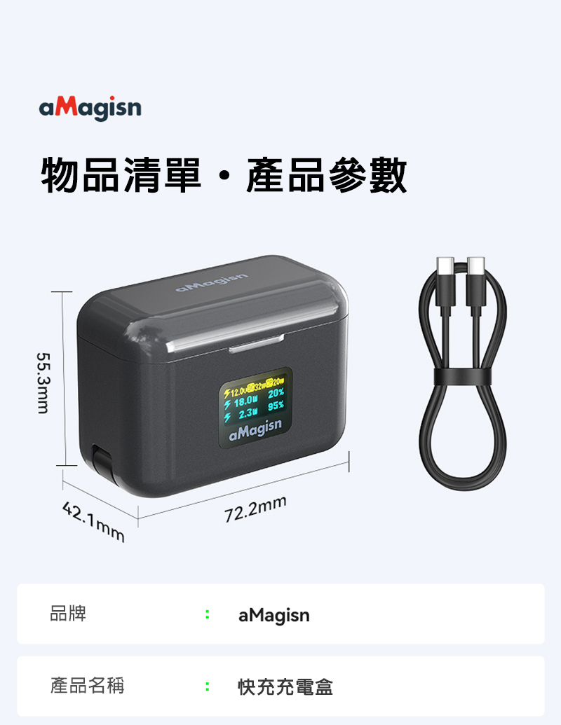 •自帶TYPE-C線,即插即充