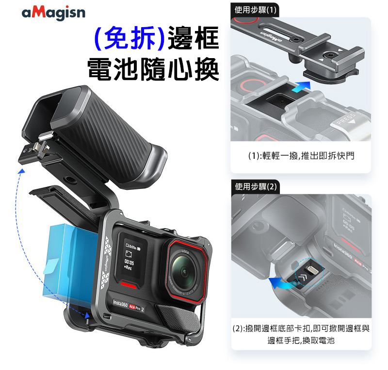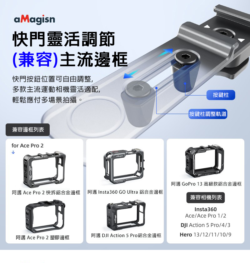 ‼️適用邊框:阿邁 Ace Pro 2 / Ace Pro / Ace 塑膠邊框、Ace Pro 2 / Ace Pro / Ace 快拆金屬邊框、Action 5 Pro / 4 / 3 金屬邊框(高級款)、GoPro Hero 13/12/11/10/9 金屬邊框(高級款)‼️