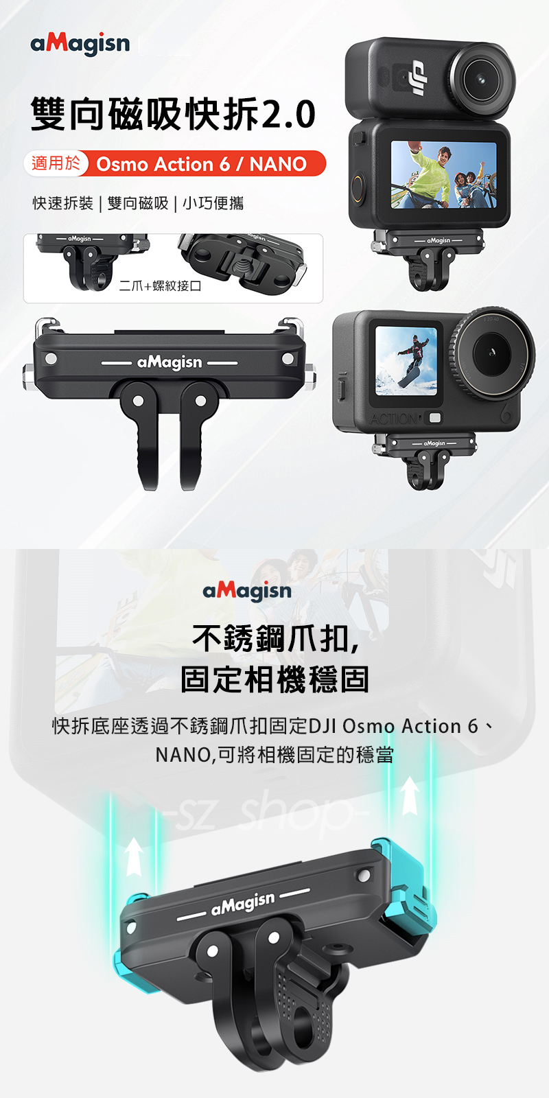 ▶品名:DJI Action 6 / NANO 鋁合金快拆支架2.0