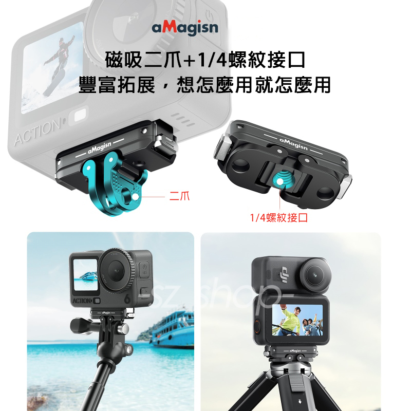 ▶底部含磁吸二爪+1/4螺紋接口