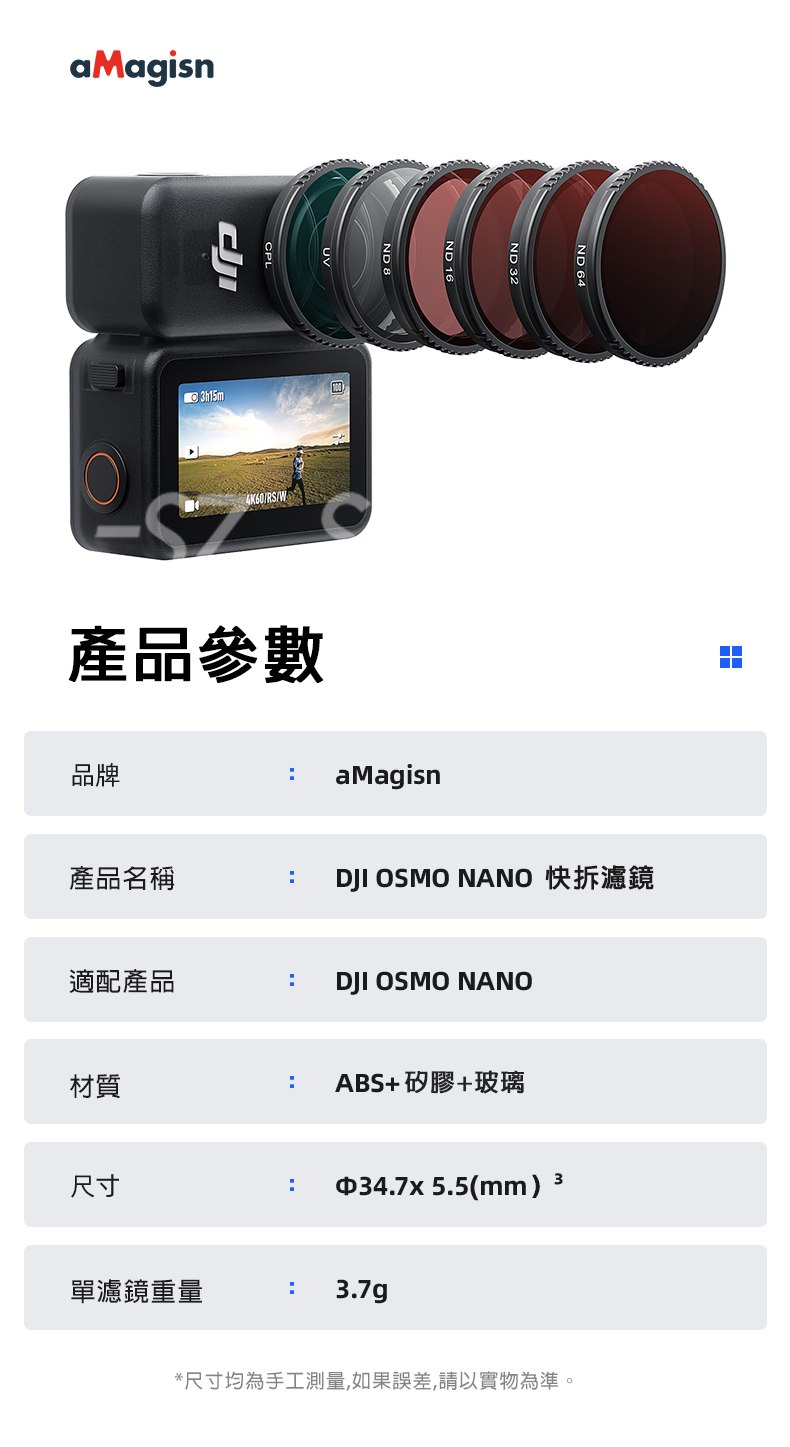 ▶品名:DJI Osmo NANO 快拆濾鏡(套式)