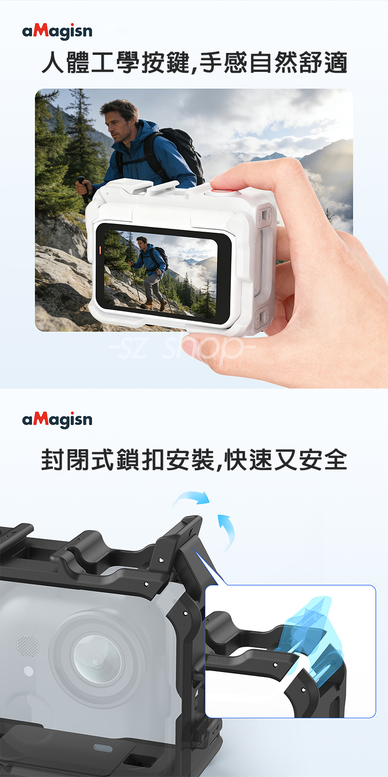 .側邊及底部皆可安裝快拆支架,橫豎拍秒切換