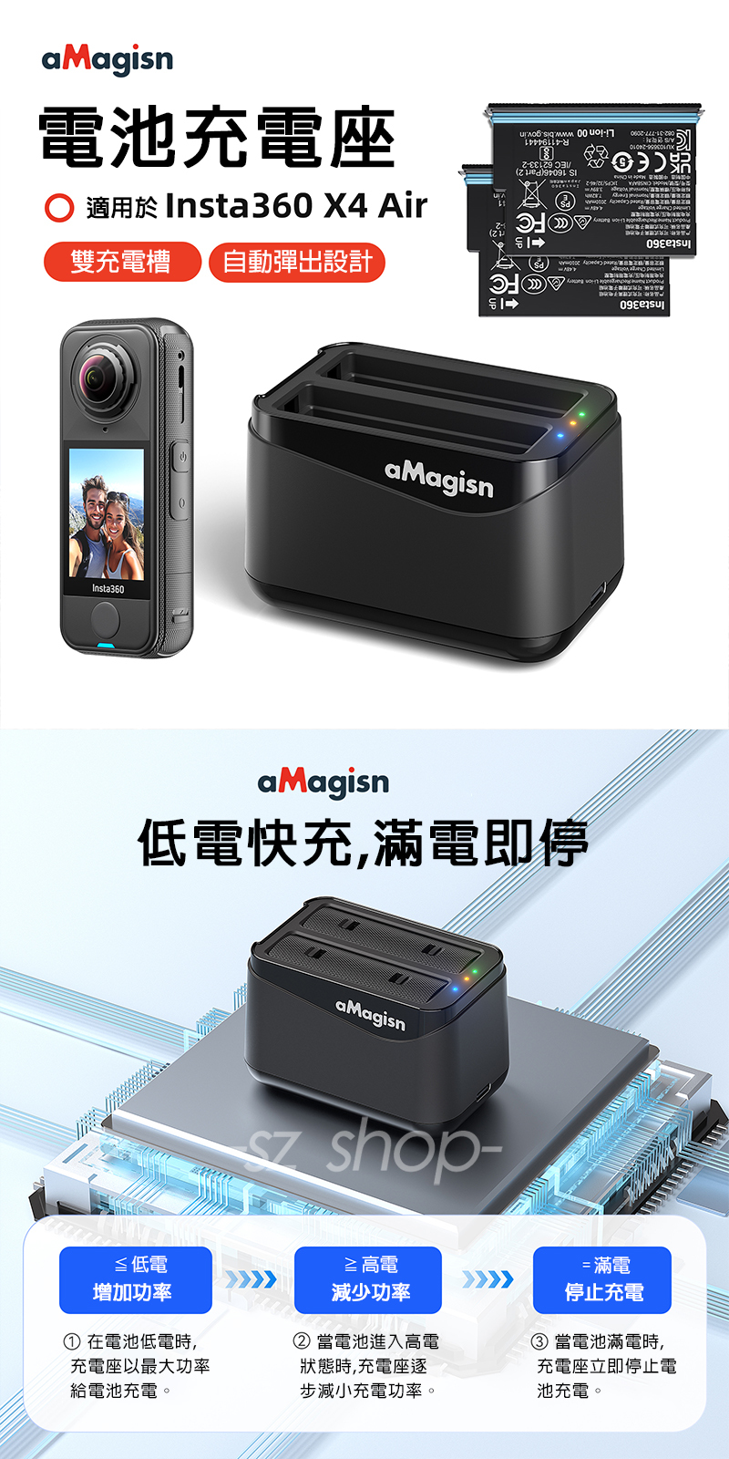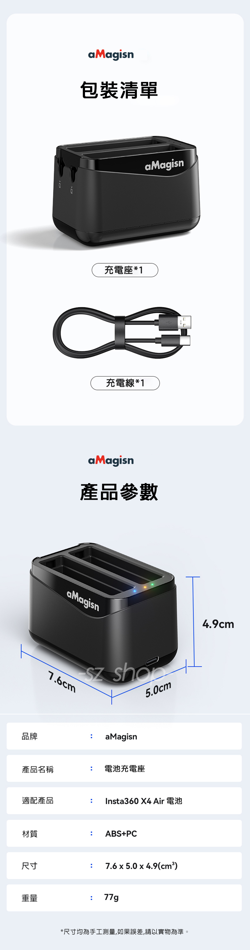 ▶品名:Insta360 X4 Air 雙充快充充電盒(可收納記憶卡)