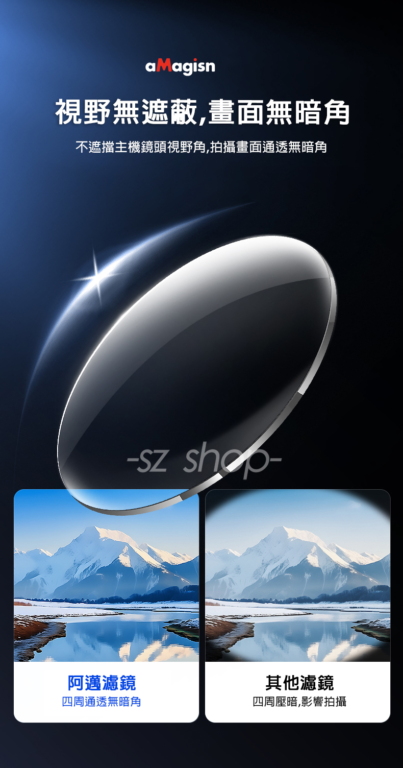 .視野無遮蔽、畫面無暗角