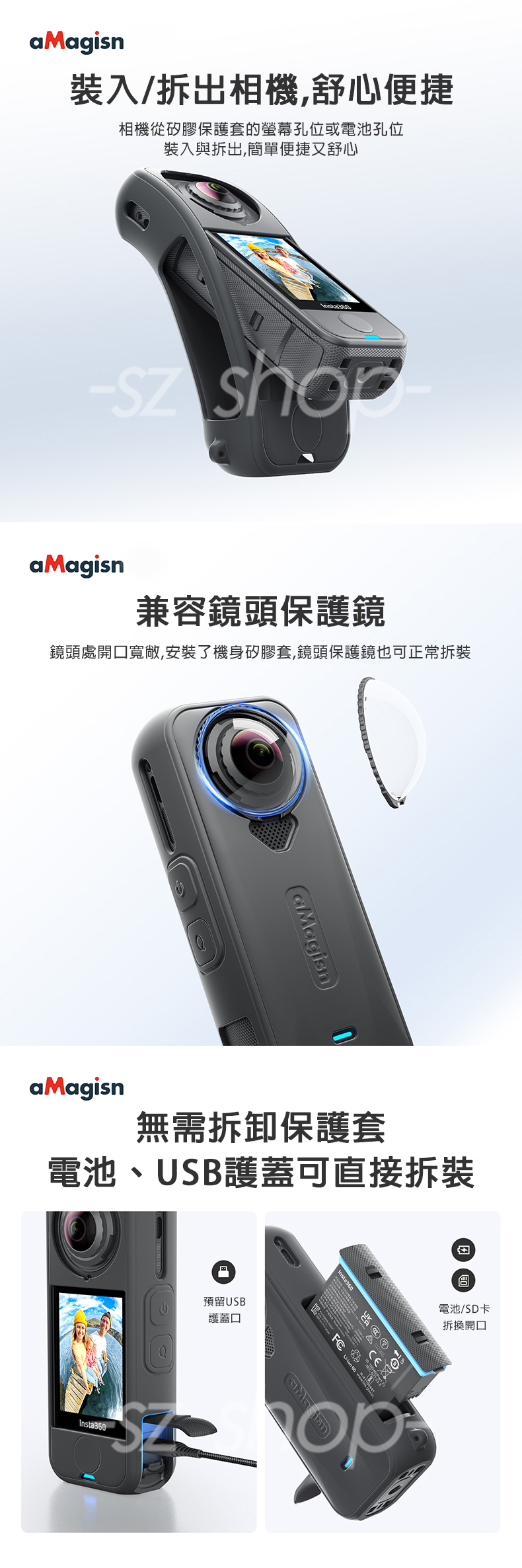 .無須拆卸保護套,電池、USB護蓋可直接拆裝