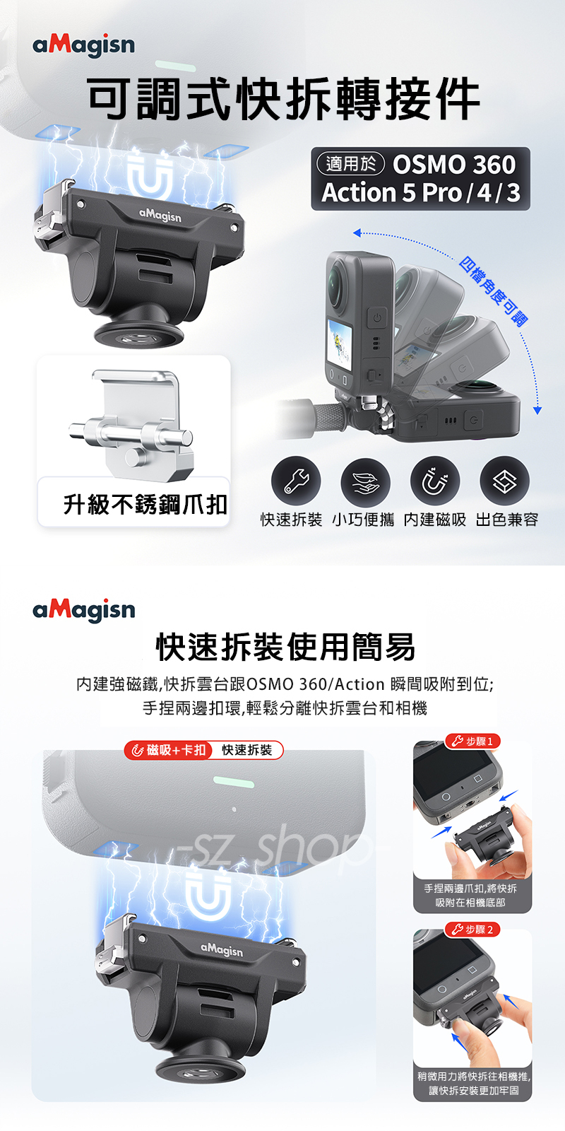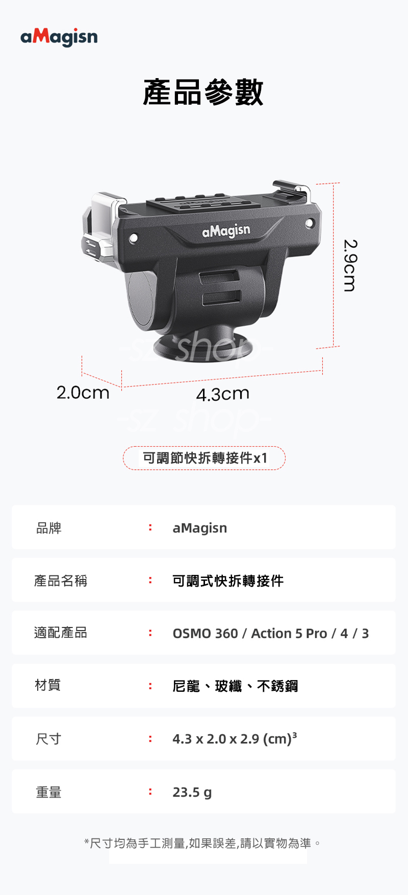 ▶品名:DJI Action 5 Pro /4/3 / OSMO 360 可調節快拆轉接件