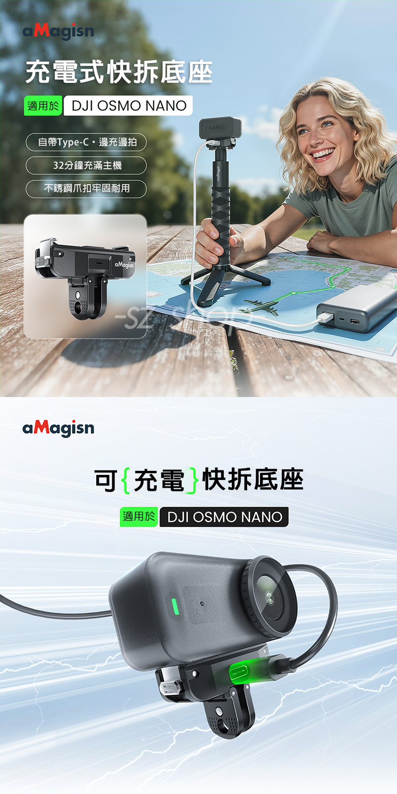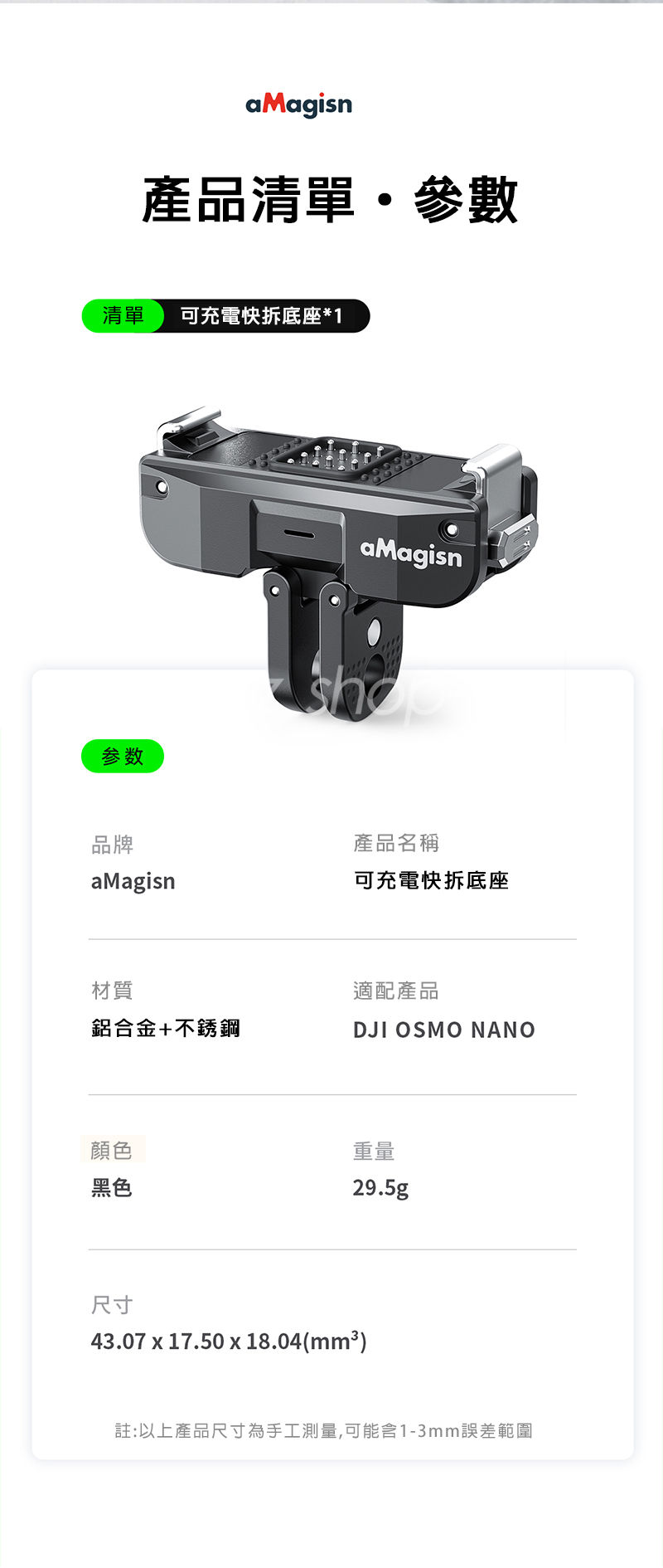 ▶品名:DJI OSMO NANO 鋁合金充電磁吸快拆支架