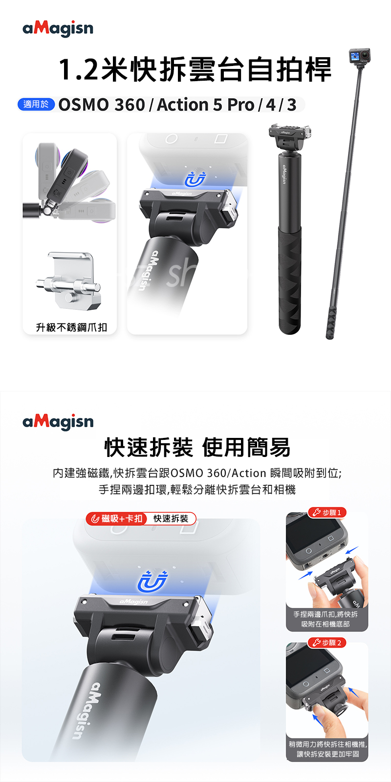 .磁吸配合爪扣,穩固相機