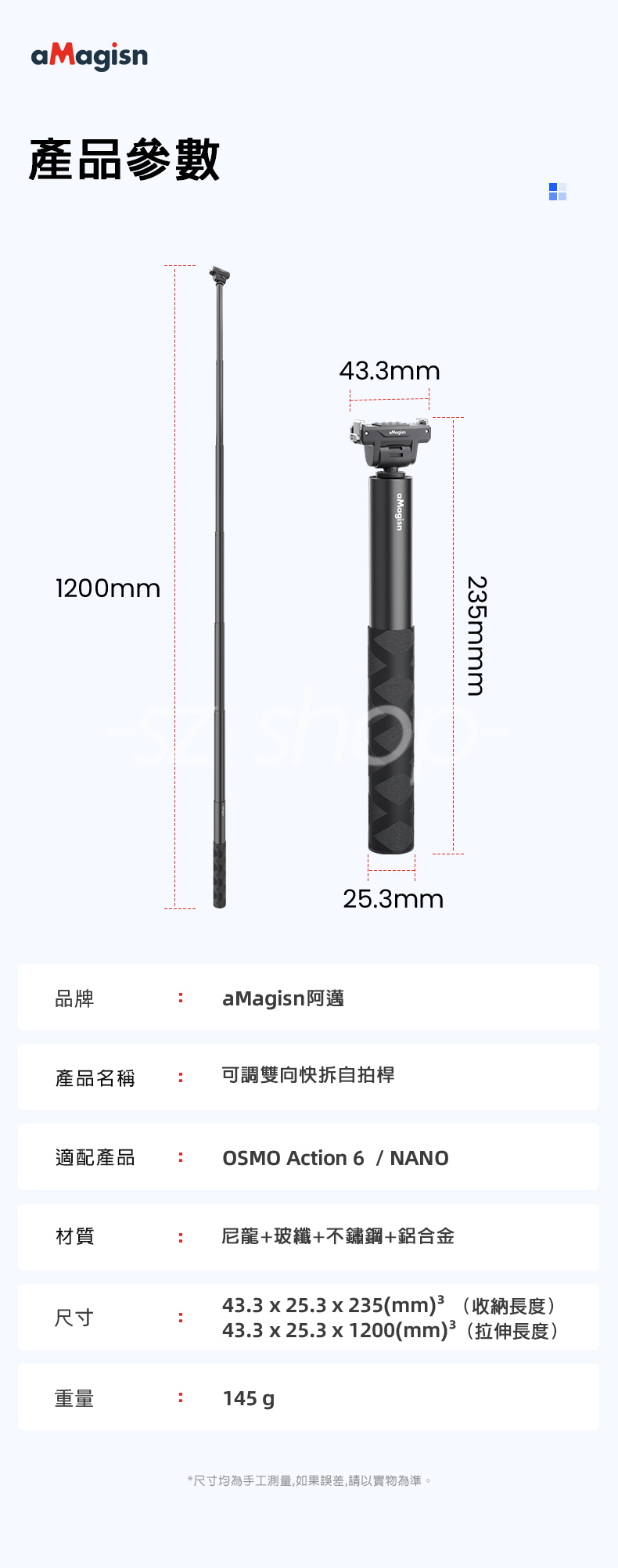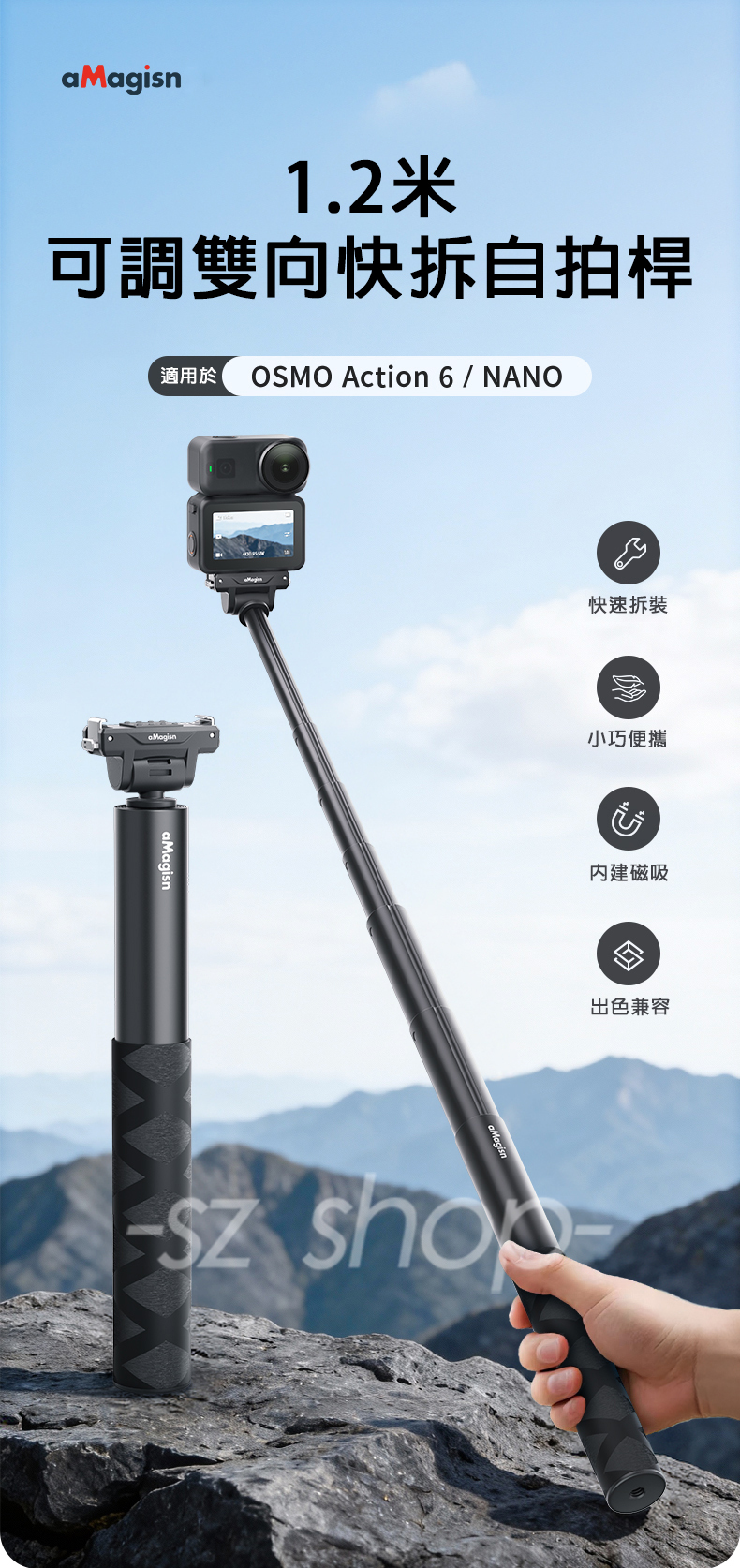 ▶品名:DJI Action 6 / NANO 1.2 公尺延長桿套件 (雙向快拆)