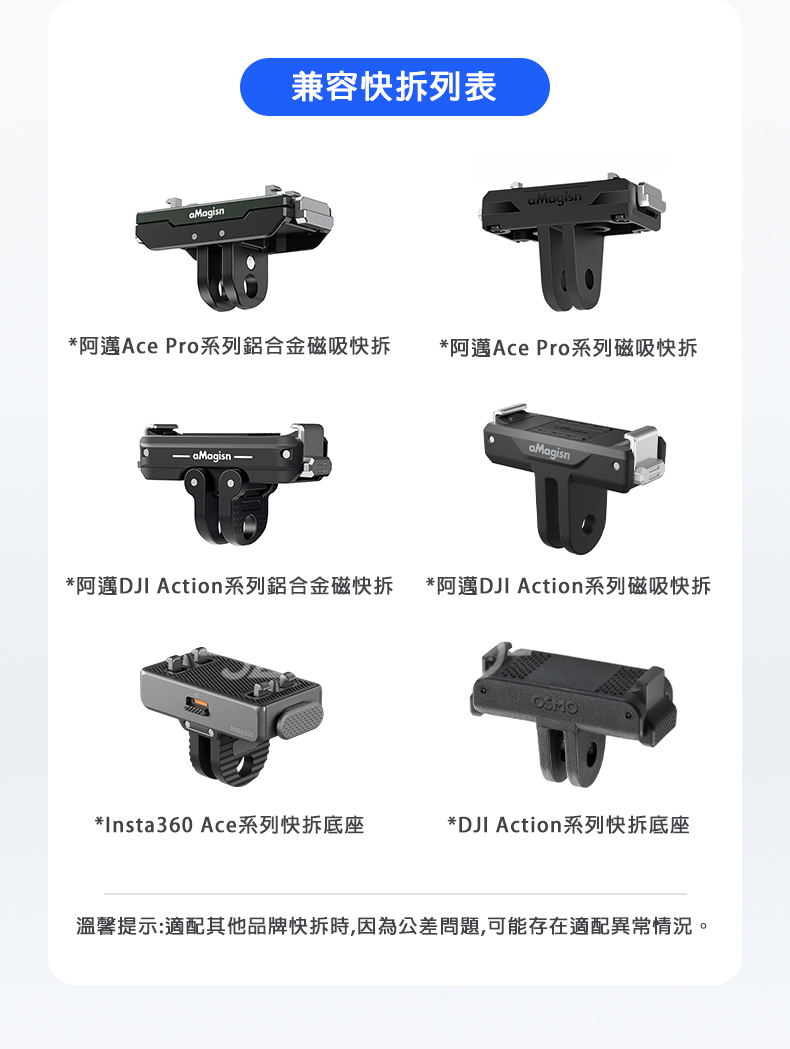 ▶兼容阿邁AcePro系列快拆/Action系列快拆/Insta360 Ace系列快拆底座/DJI Action系列快拆底座