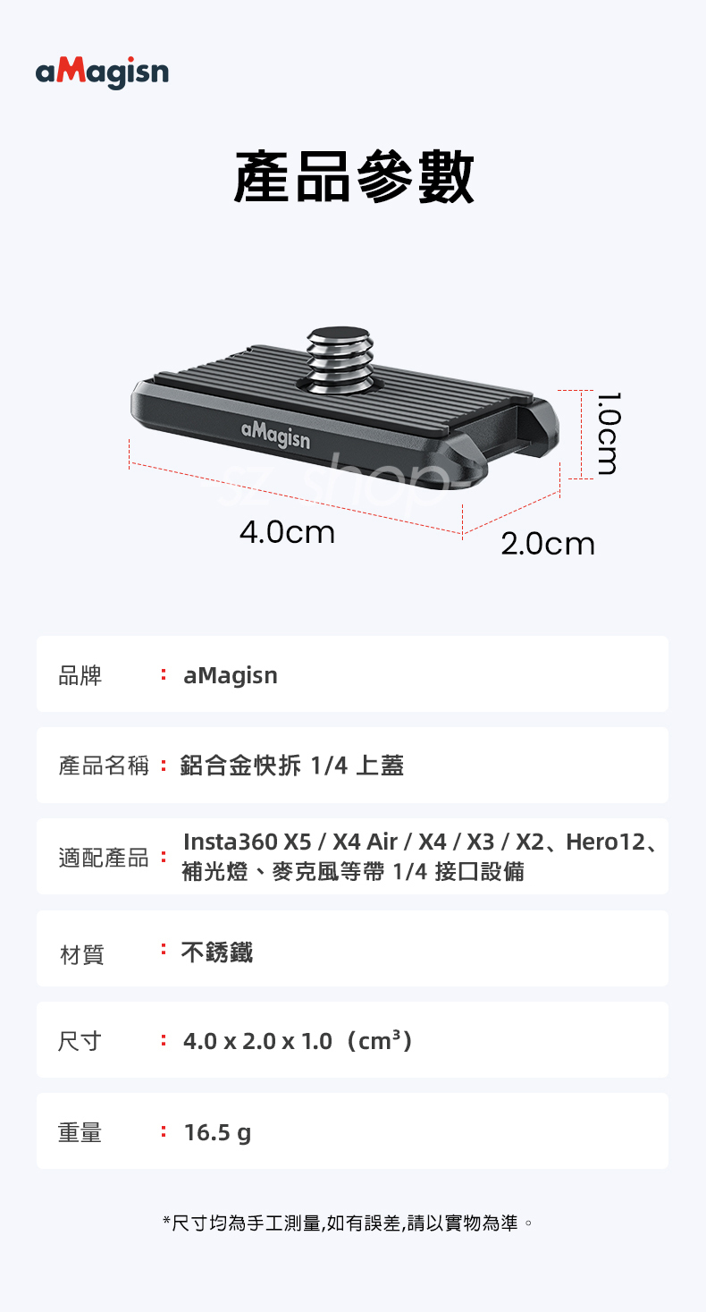 ▶品名:Insta360 X5/X4 Air/X4/X3 鋁合金快拆1/4上蓋