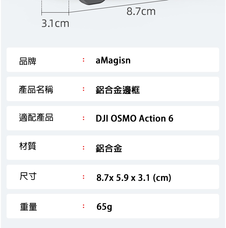 ▶品名:Action 6 鋁合金快拆邊框(含鏡頭套)