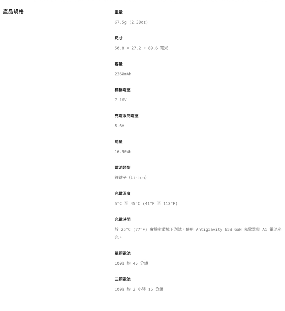 ▶品名:Antigravity A1 標準飛行電池 原廠公司貨