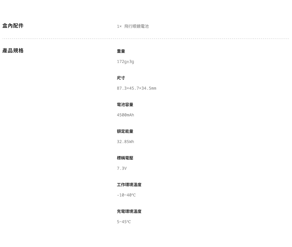 ▶品名:Antigravity Vision 飛行眼鏡電池 原廠公司貨