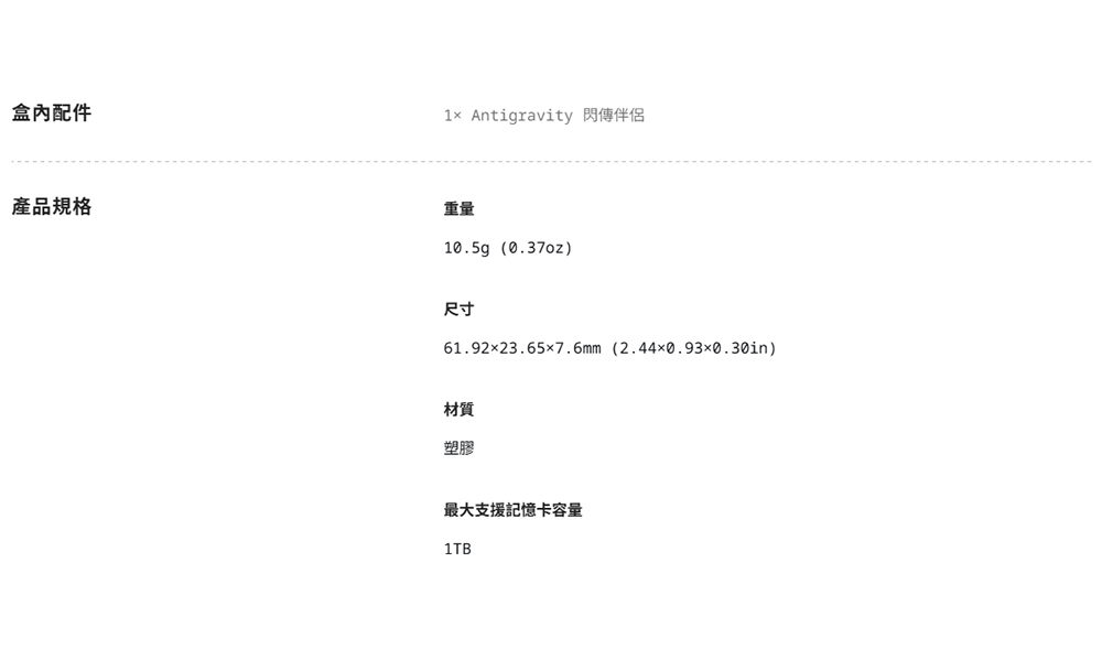 ▶品名:Antigravity A1 閃傳伴侶 原廠公司貨
