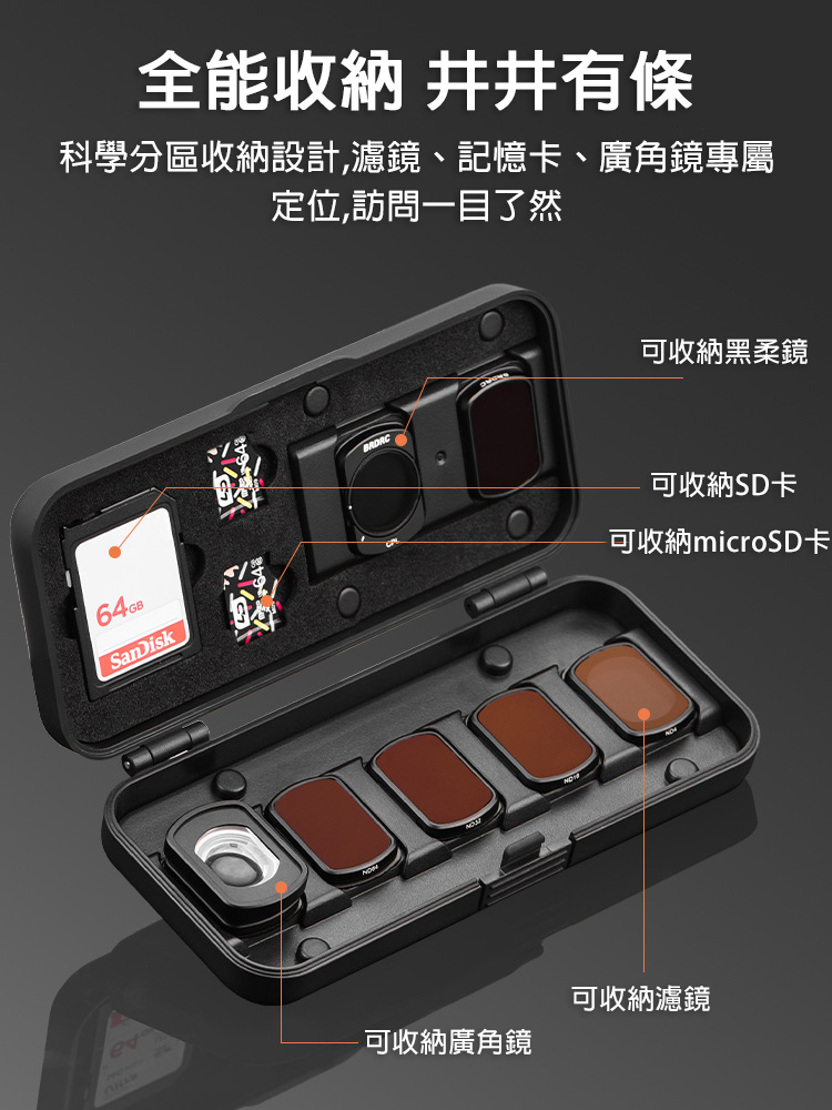 .全能收納,濾鏡、記憶卡、廣角鏡一目了然