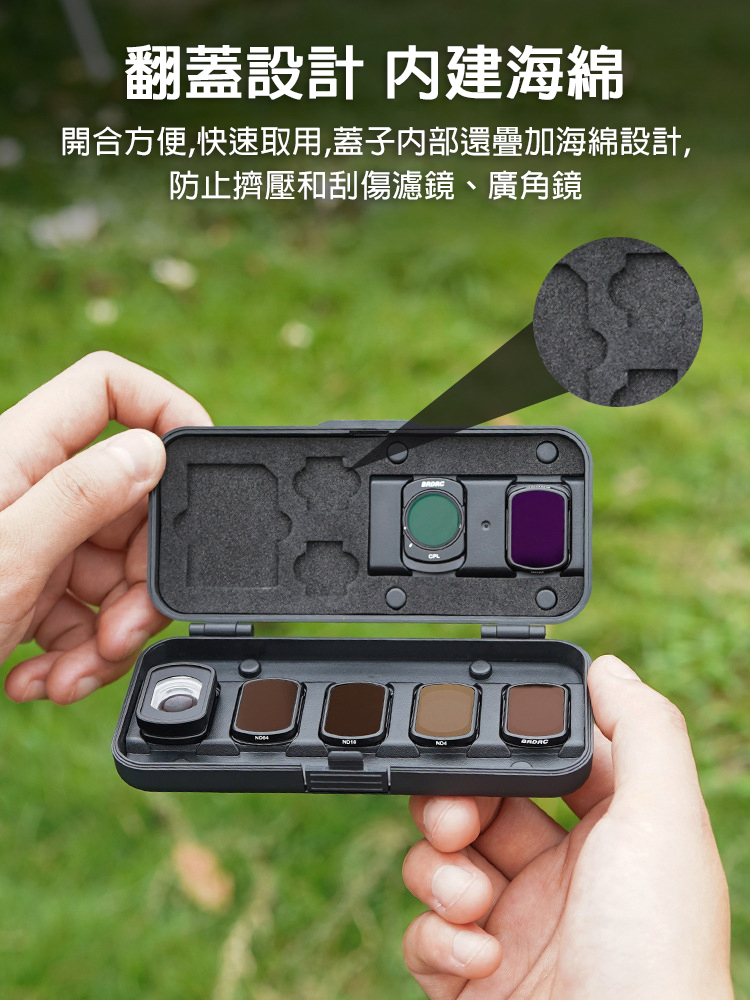 ▶全能收納,濾鏡、記憶卡、廣角鏡一目了然