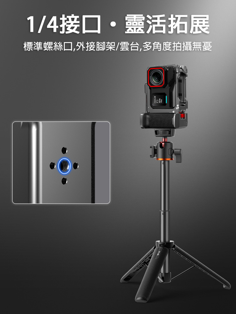 .1/4接口,可外接腳架、雲台多角度拍攝