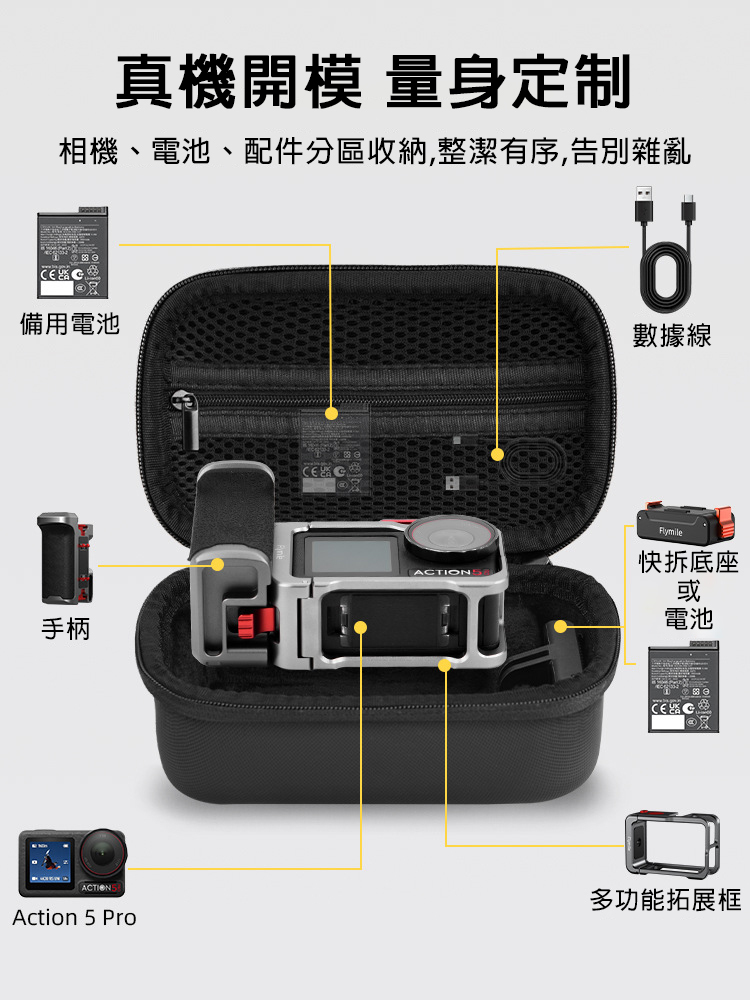 ▶品名:DJI Action 5 Pro / 4 / 3 街拍套裝款收納包