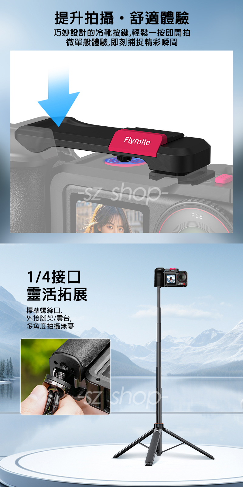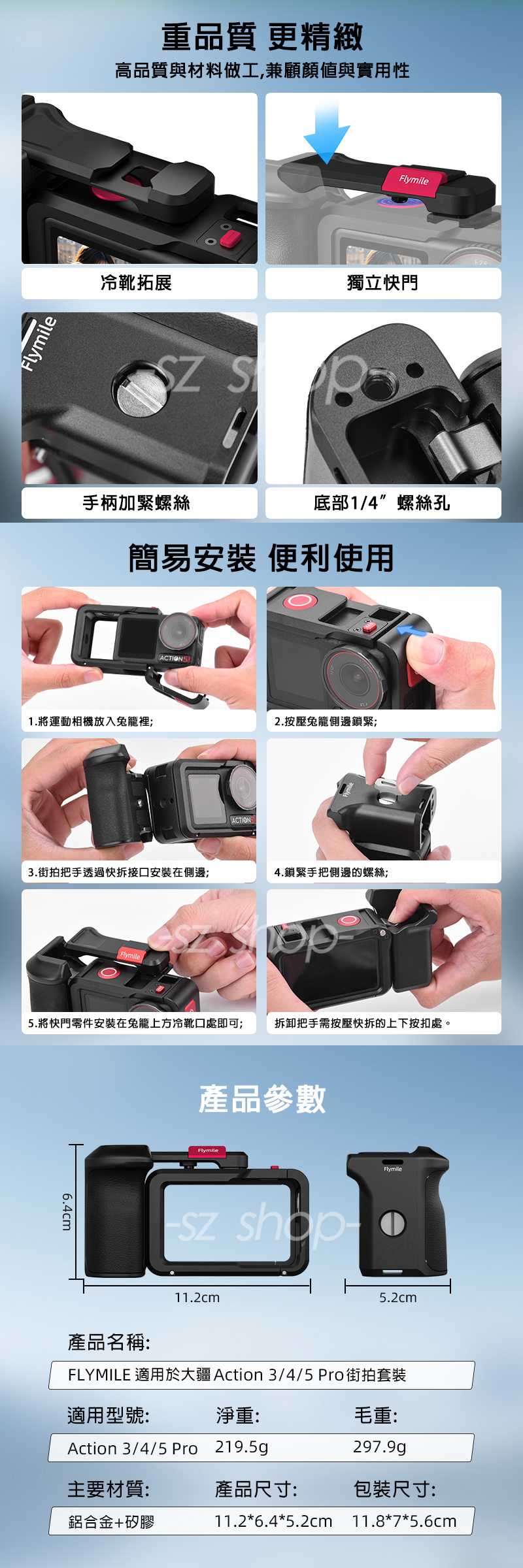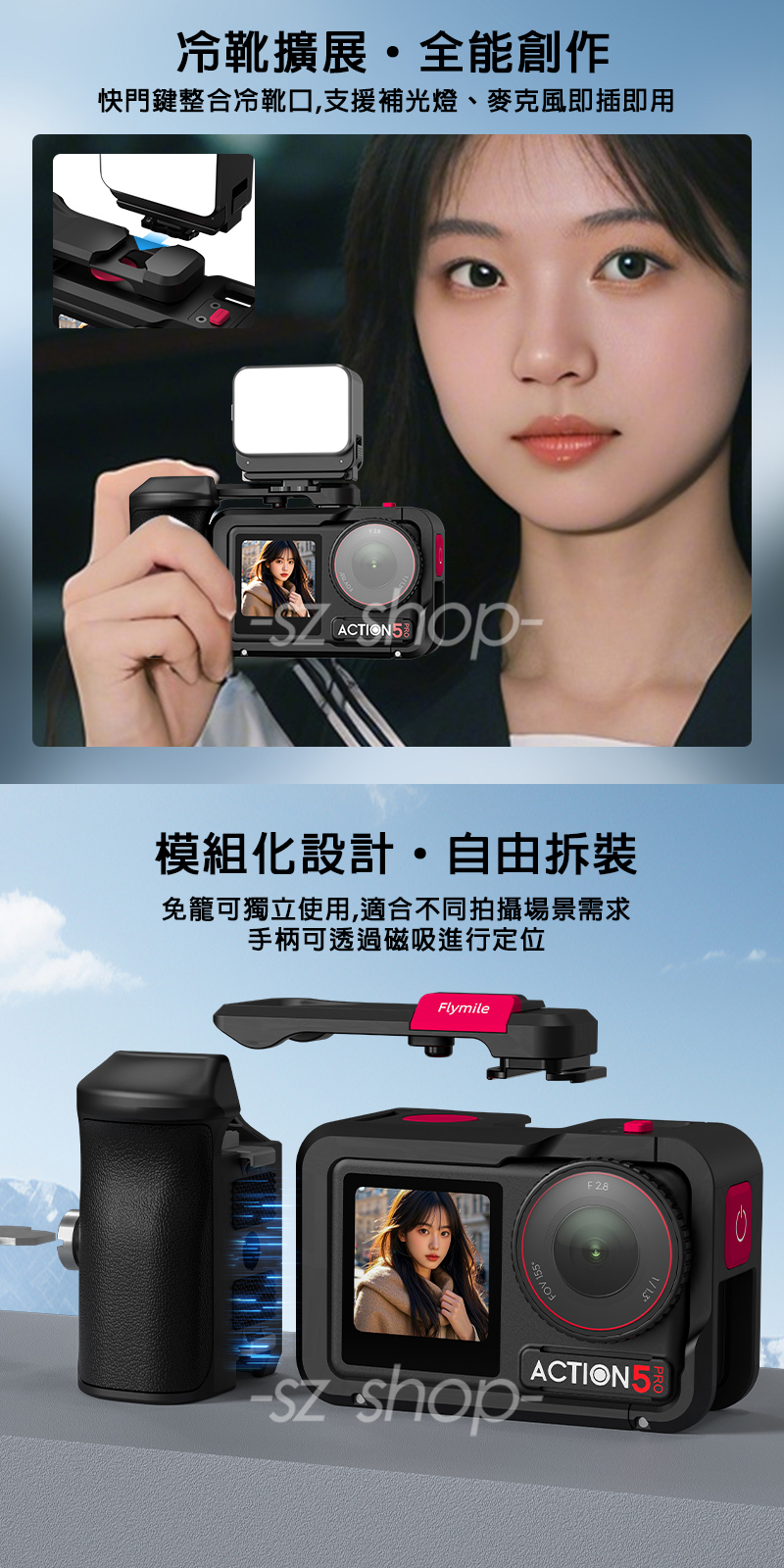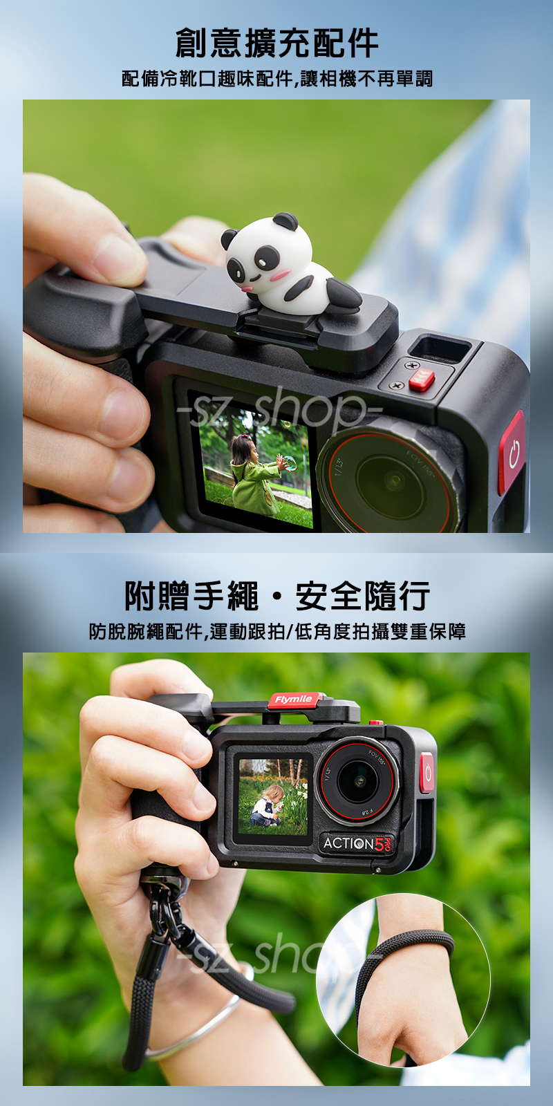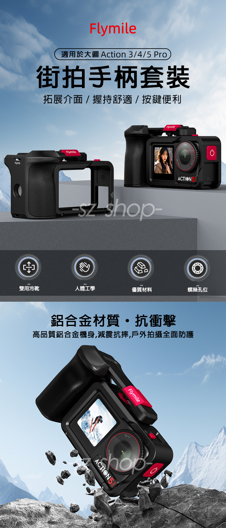 ▶品名:DJI Action 5 Pro / 4 / 3 街拍手柄套裝(附手繩)