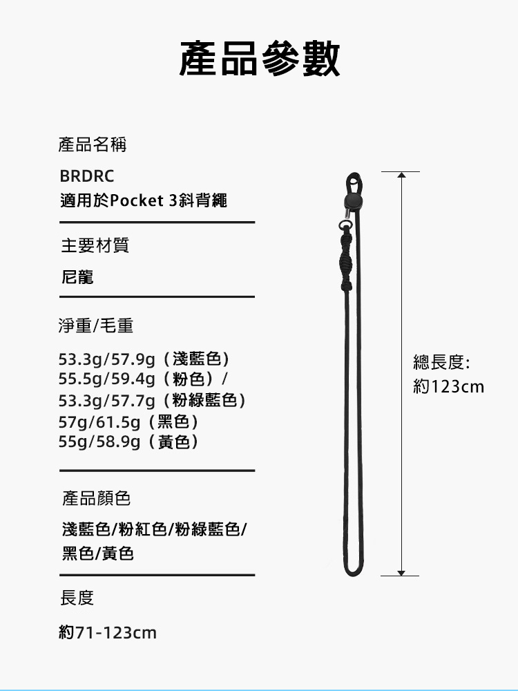 ▶品名:DJI Pocket 3 三圓頭可調節斜掛繩