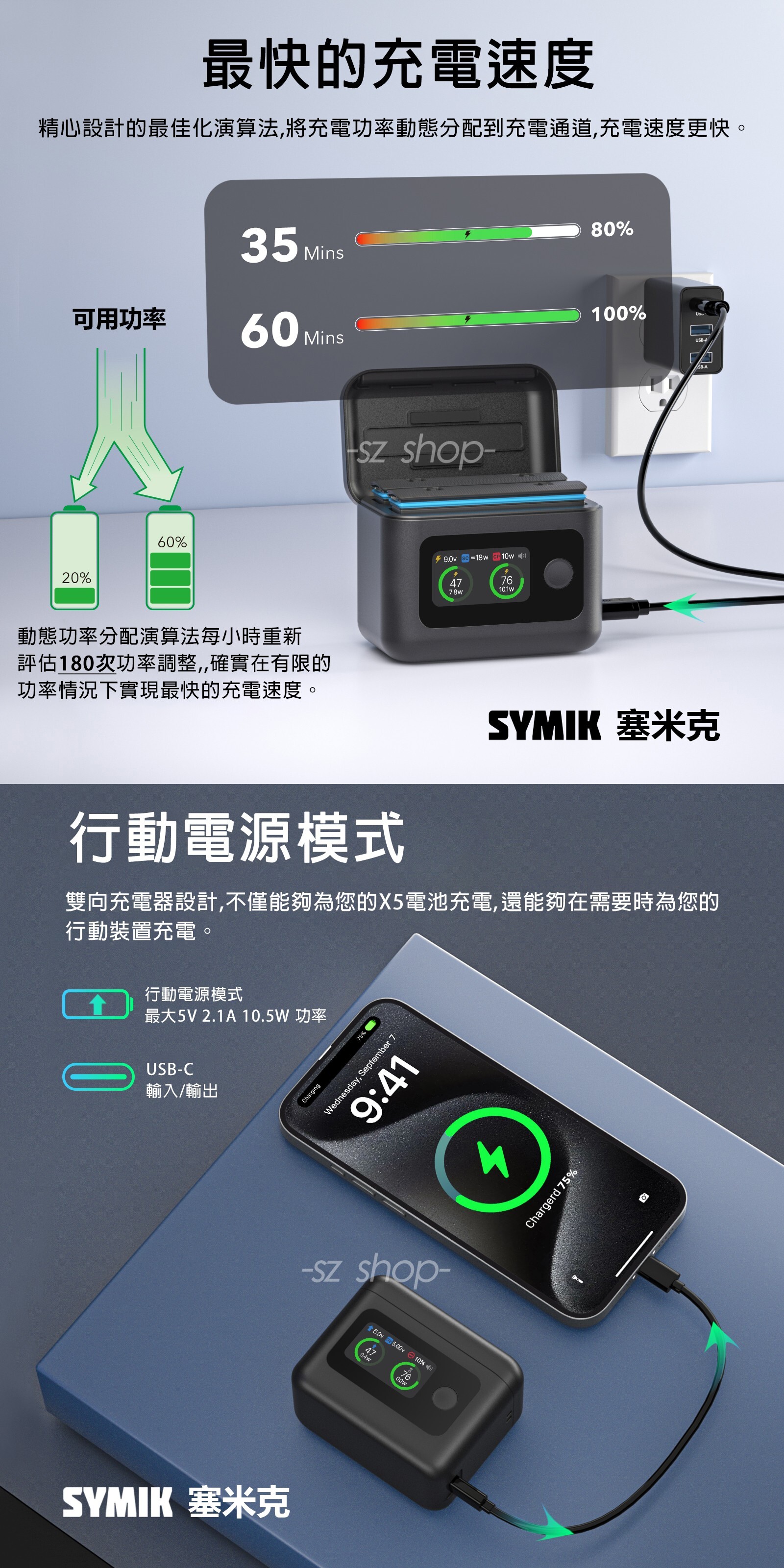 .雙向充電器設計,行動電源模式,可為行動裝置充電。