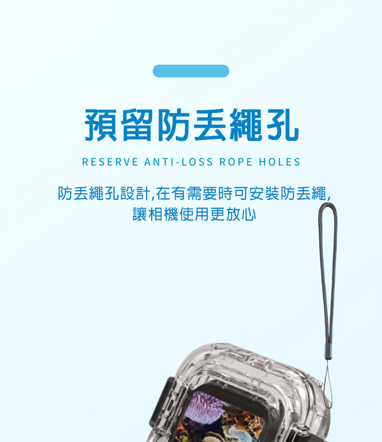 ▶防丟手繩設計,有需要可安裝防丟繩