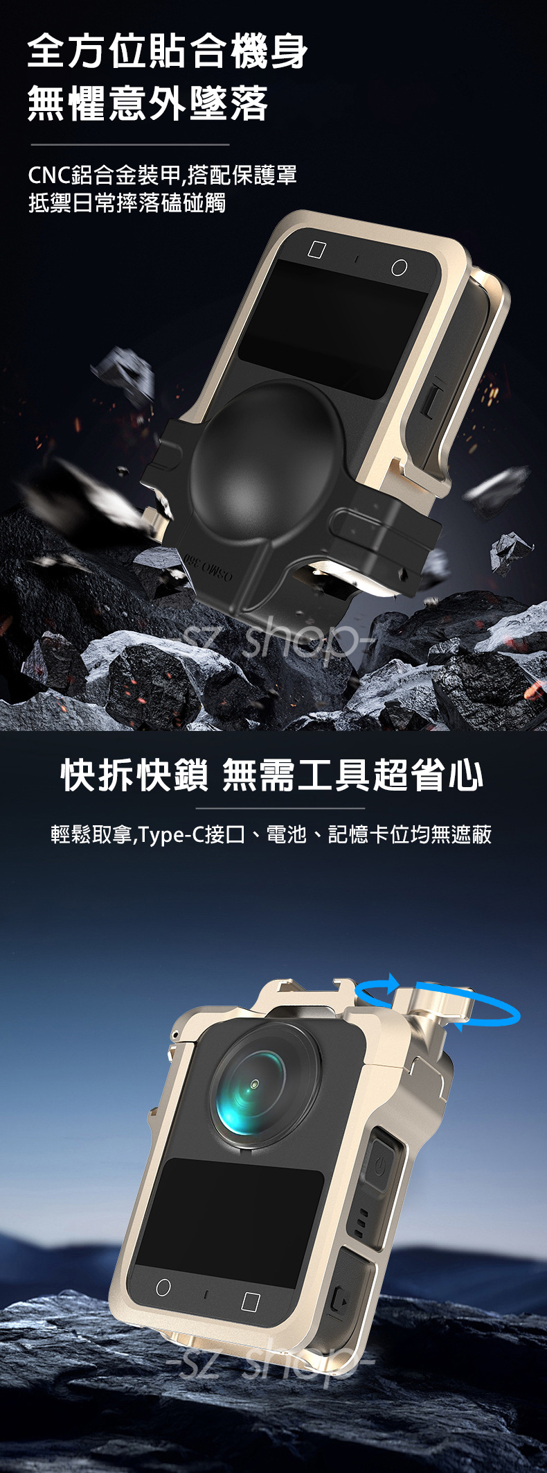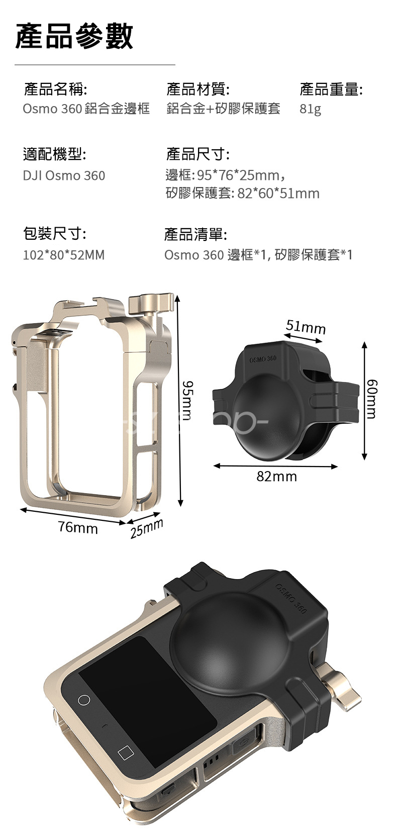 ▶品名:DJI OSMO 360 鋁合金拓展邊框+鏡頭套 (底部含快拆接口+1/4螺孔)