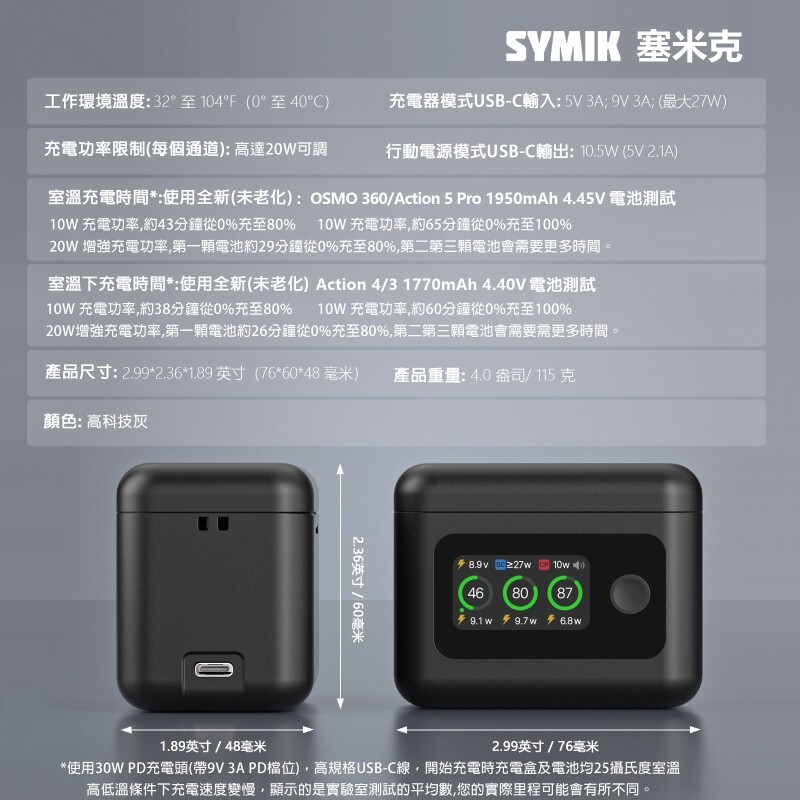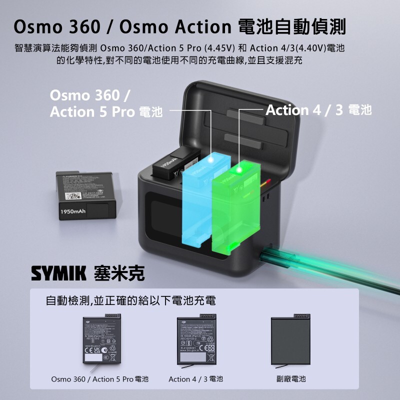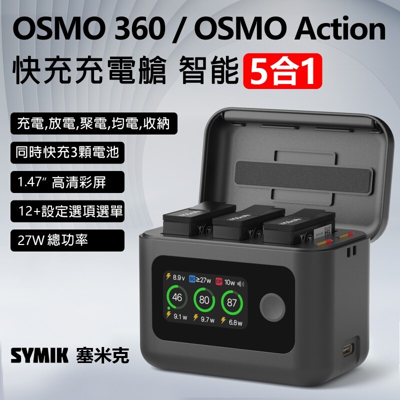 ▶品名:DJI Action 6 /OSMO 360 / Action 5 Pro /4/3 5合1三充充電盒(可放記憶卡)