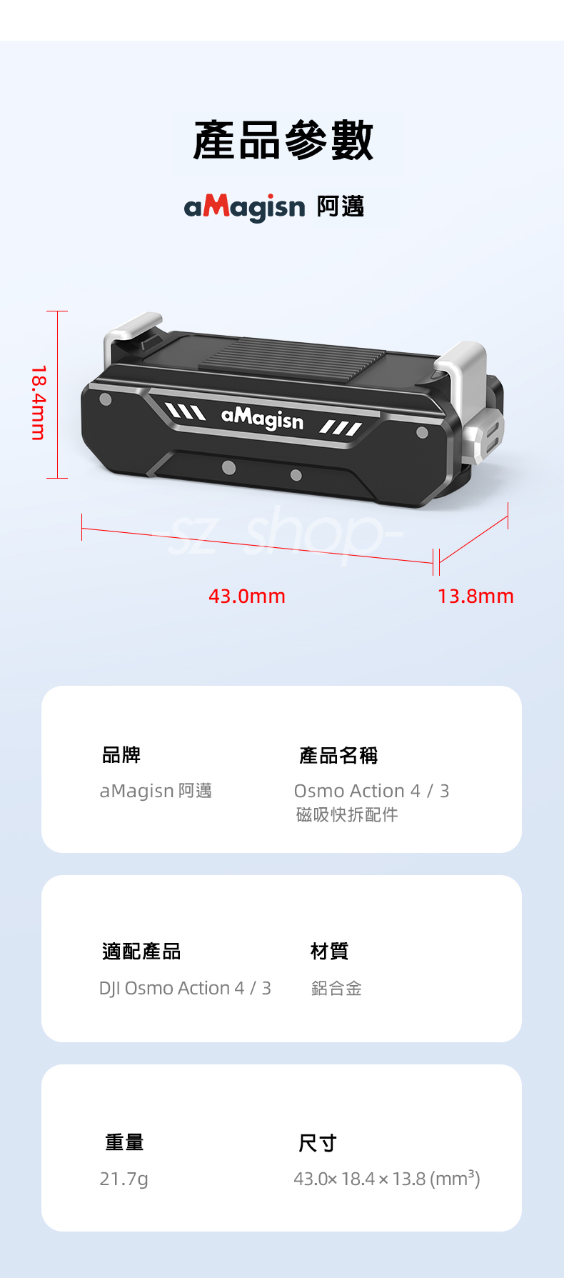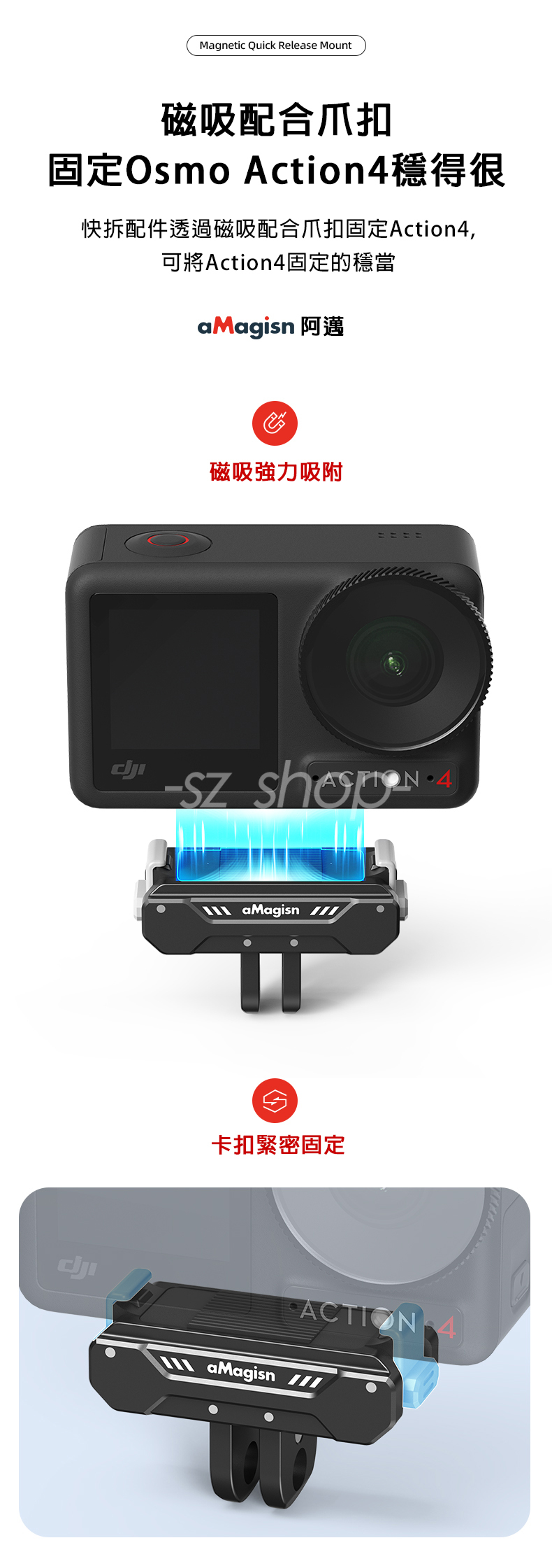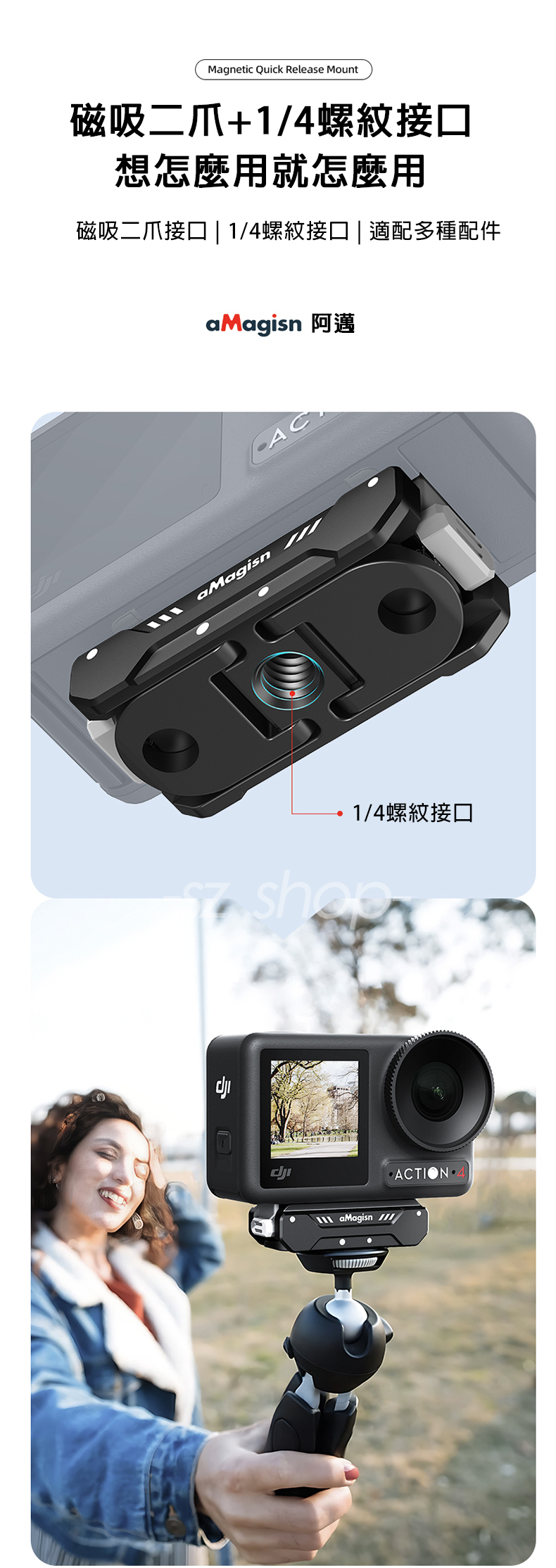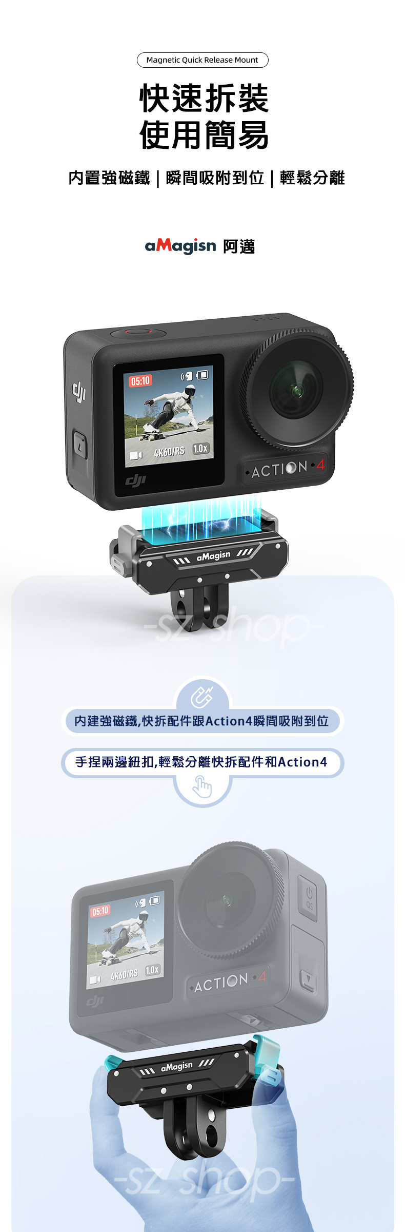▶品名:DJI Action 5 PRO 、Action 4 / 3 磁吸快拆支架