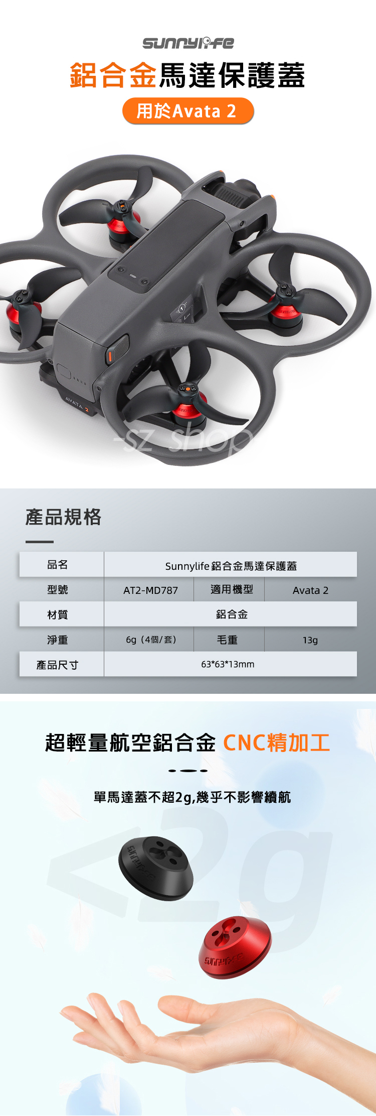 ▶超輕航空鋁合金,CNC精加工。單個馬達蓋不超2g,幾乎不影響續航