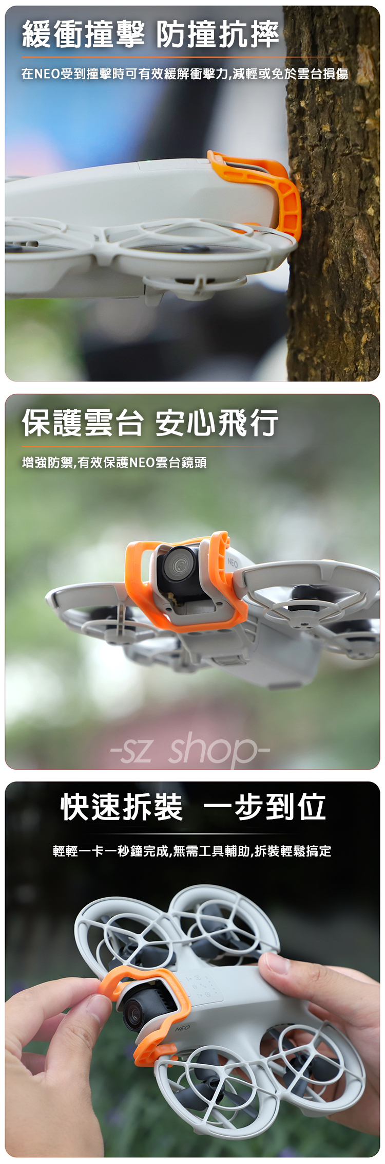 ▶緩衝撞擊,防撞抗摔。在NEO受到撞擊時可有效緩解衝擊力,減輕或免於雲台損傷