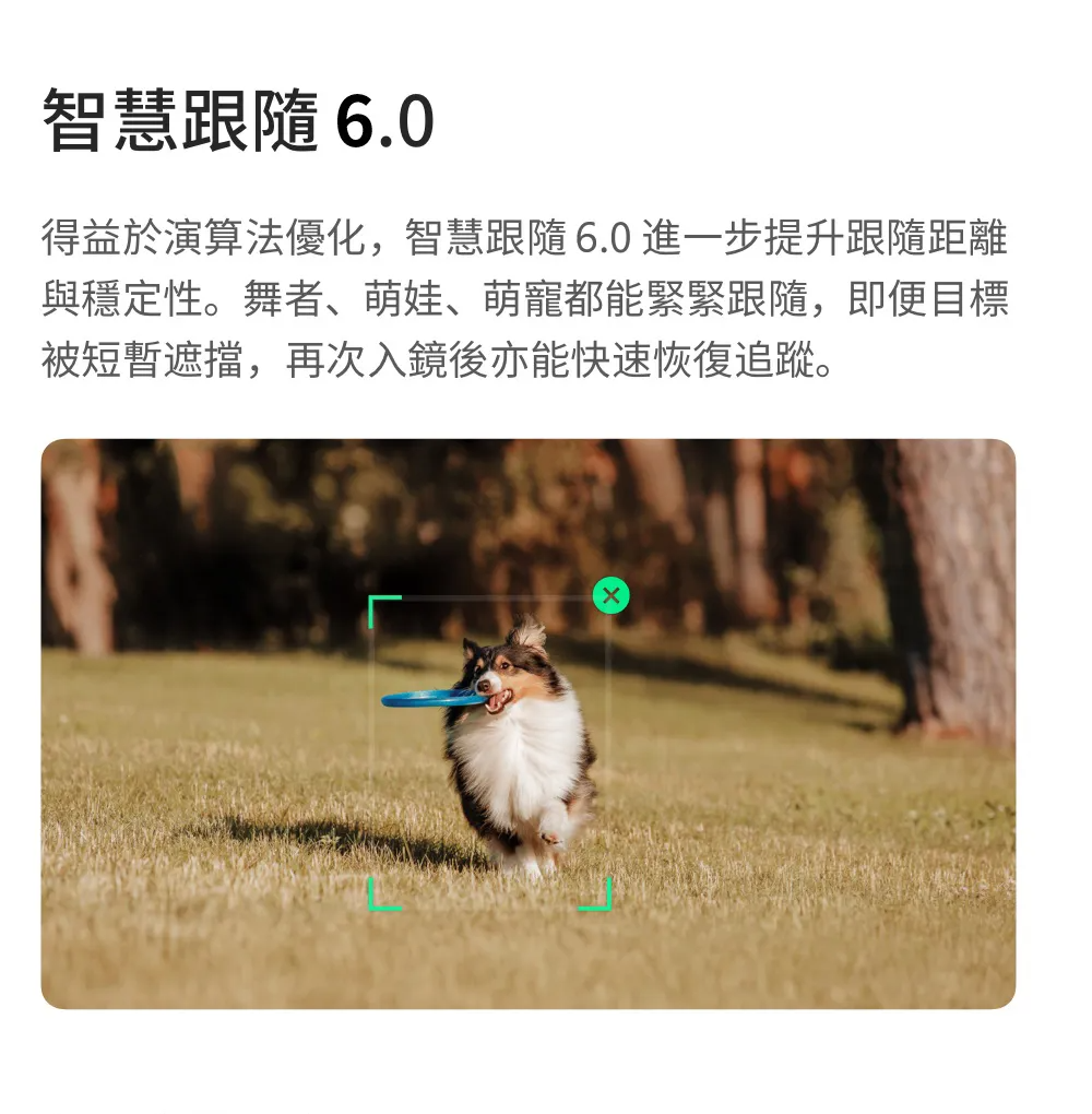 ▶升級智慧跟隨6.0 目標快速追蹤 優化使用體驗