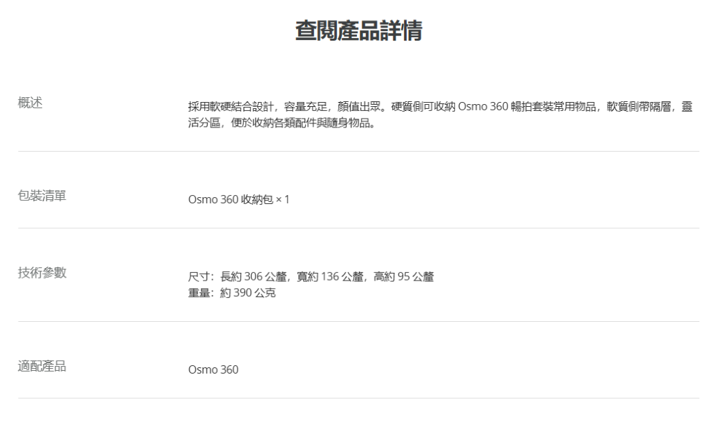 ▶硬質側可收納 Osmo 360 暢拍套裝常用物品,軟質側帶隔層,靈活分區,便於收納各類配件與隨身物品