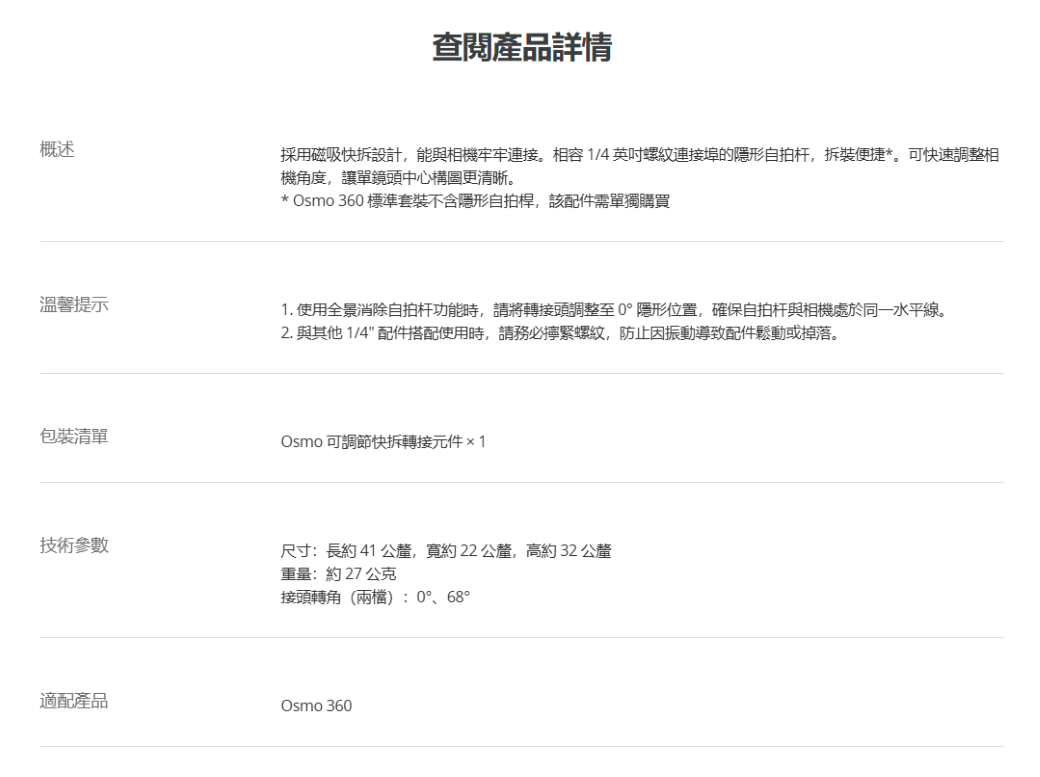 ▶相容 1/4" 螺紋連接埠的隱形自拍杆,拆裝便捷。可快速調整相機角度,讓單鏡頭中心構圖更清晰