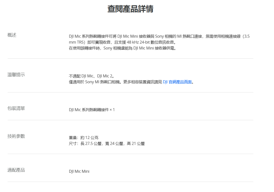 ▶可直接將 DJI Mic Mini 接收器與 Sony 相機的 MI 熱靴口連接,實現 48 kHz 24-bit 數位音訊收音,並由相機為接收器供電