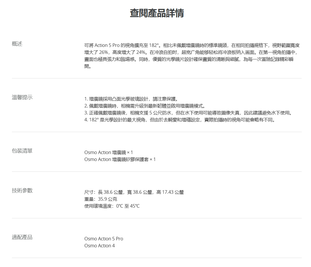 ▶搭配 Action 5 Pro 使用時,可將視角擴充至 182°